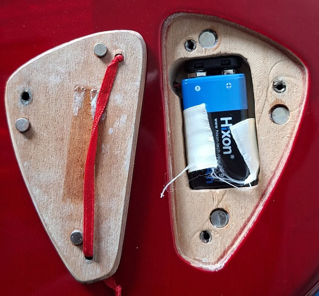 eine mögliche lösung: neuen e-fach-deckel nachkaufen bzw. selber anfertigen, diesen mit batterie-fach ausrüsten und das original für einen evtl. wiederverkauf (vorzugsweise wiederauffindbarDie meisten meiner Bässe haben Schnappfächer.
