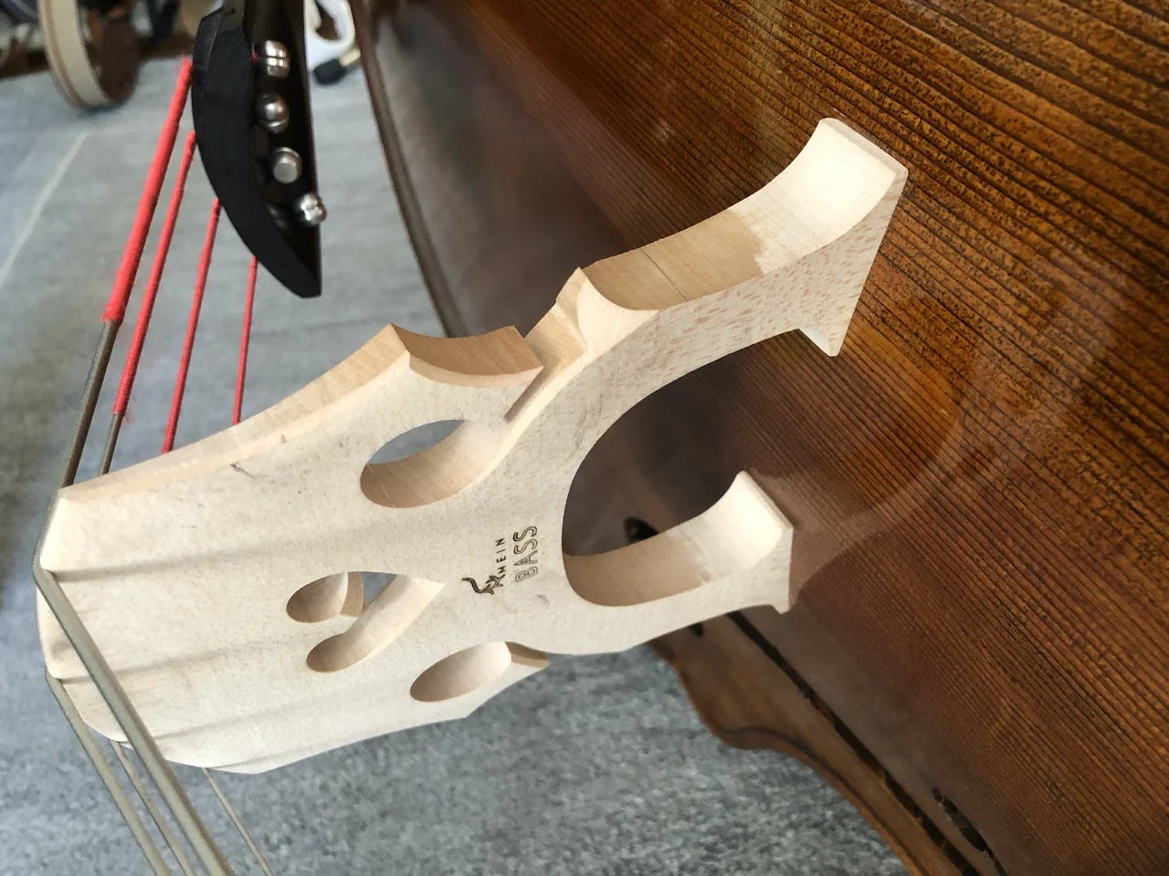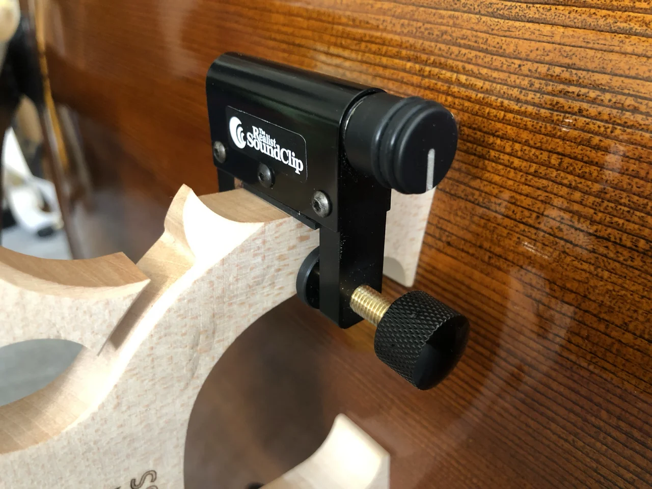 Nach meinen bisherigen Erfahrungen ist die Position am Steg mittig zwischen dem Fuß und den Flügeln klanglich ausgewogen. Hier kommen die Höhen, die Bässe und auch der Impuls beim Pizzicato ganz gut zur Geltung. Ein sehr fester und definierter „Sitz“ des Tonabnehmers am Steg ist hier wichtig für die Klarheit und Stabilität des Tones.