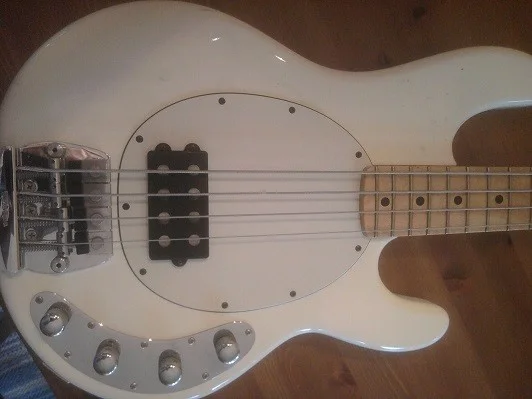 Eine Woche später, Samstagnachmittag kurz vor Ladenschluss (damals haben Geschäfte noch um 14 Uhr geschlossen), fand ich mich wieder bei Vitus ein, der mich konspirativ in den Hinterhof zu seinem Auto lotste ... dem Kofferraum entnahm er einen weißen und einen knallroten Stingray (ich vermute, es war ein 2-Bänder) ... ich durfte beide für ein paar Tage mitnehmen zum Testen ... auch wenn ich damals noch weniger Ahnung vom Bassspielen hatte wie heute, war mir sofort klar, dass der Weiße eine Rakete war ... der Rote sah zwar besser aus, machte aber nicht so viel Druck ... die Entscheidung war klar, der Deal schnell abgewickelt ... bezahlt habe ich damals glaube ich stolze 1200 D-Mark ...