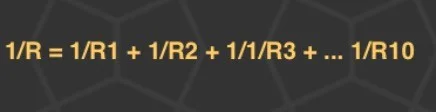 Rges=1/(1/R1 + 1/R2... + 1/Rn)
