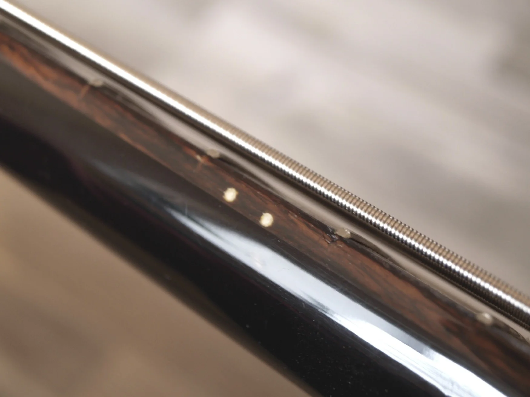 Da ich aber des schraubens mächtig bin, habe ich dem Bass erst einmal einen Sattel verpasst, der es ermöglicht, auch Standard Saiten zu verwenden (als ich ihn bekam, waren nämlich keine Saiten mehr drauf).