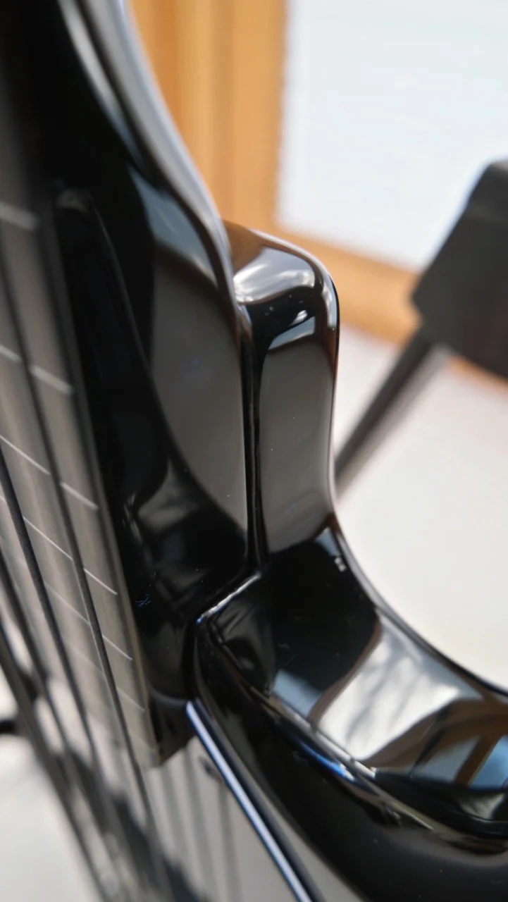 Die Schraub-Halsplatte wurde wohl mal etwas zu fest angezogen und hat einen leichten Haar-Riss in der Mitte (nicht zu fotografieren), geht aber nix auseinander, ist alles fest und sicher.