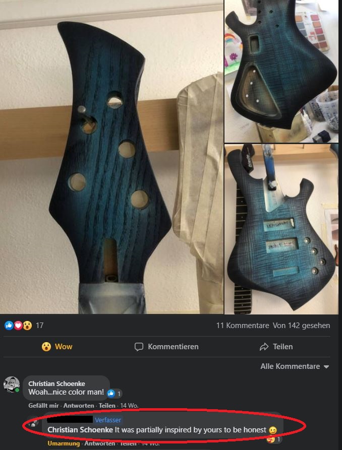 "no inlays" in der Beschreibung finde ich schon verdächtig (was soll es dann sein, Aufkleber ?), das Pickup ist nicht grün, usw.