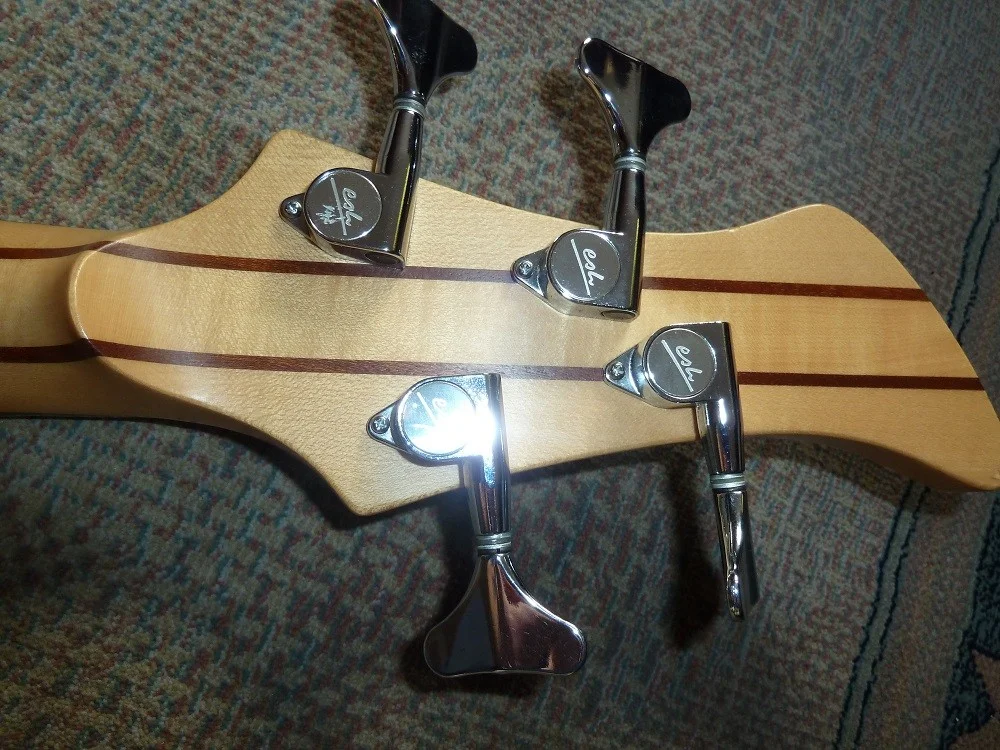 Regler: Volumemit aktiv/passiv Schaltung für EQ, Pickup-Pan-Selector, Höhen, Bässe, 3-Wege Schalter für ESMM-PU
