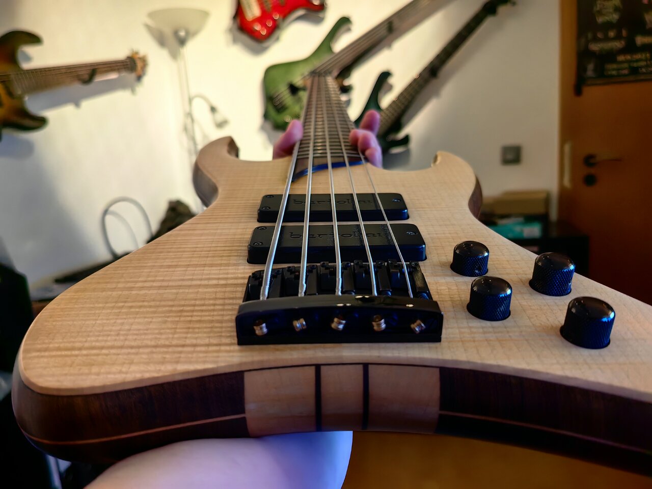 Der hat nen 6-Fach Wahlschalter, wo in den hinteren beiden Positionen definitiv der Piezo drin ist. Bei Pos. 5 mehr, bzw. vermutlich ohne die Bartolini und bei Pos. 6 vermutlich im Mix. Bei den restlichen bin ich noch nicht ganz sicher. Eine klingt wie 6 aber ohne Piezo, die andere nach Mittenboost auf dem Steg Pickup und eine die etwas mehr auf den Hals Pickup läuft. Und einmal noch mit Piezo.