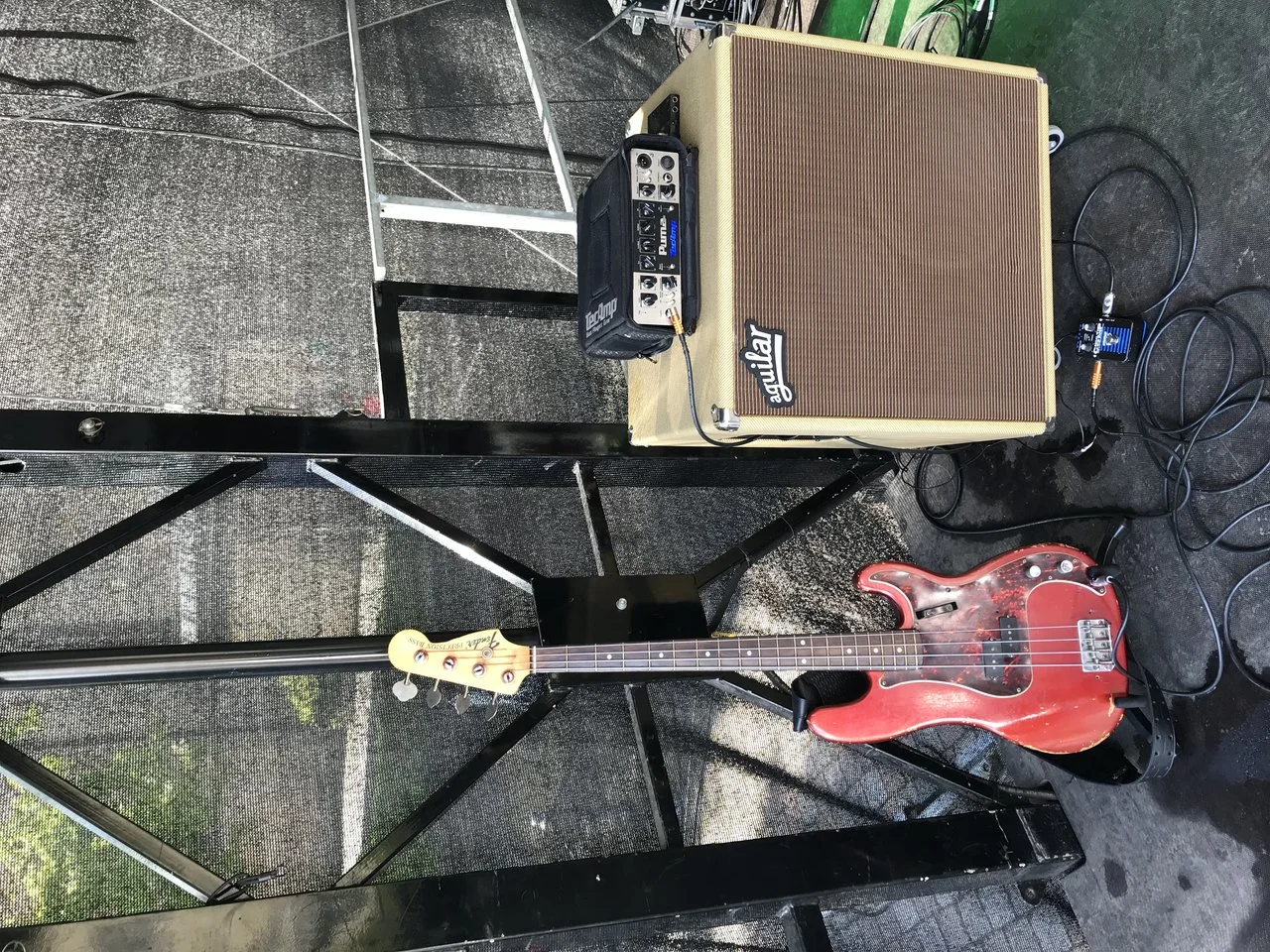 Bei Intermusik Hoins in Bremen bot mir der Verkäufer meines Vertrauens im Jahr 1994 einen neuwertigen gebrauchten Esh-Sovereign mit Sunburst-Lackierung und goldenen Mechaniken für 2.400 Mark an. Ich schlug ein. Dazu holte ich mir einen Trace-Elliot-Bassturm, den ich bis heute spiele: als Topteil einen GP7 Transistor-Amp, dazu eine 4x10er- und einer 15-Zoll-Box. Keine Effekte, keinen Kompressor.