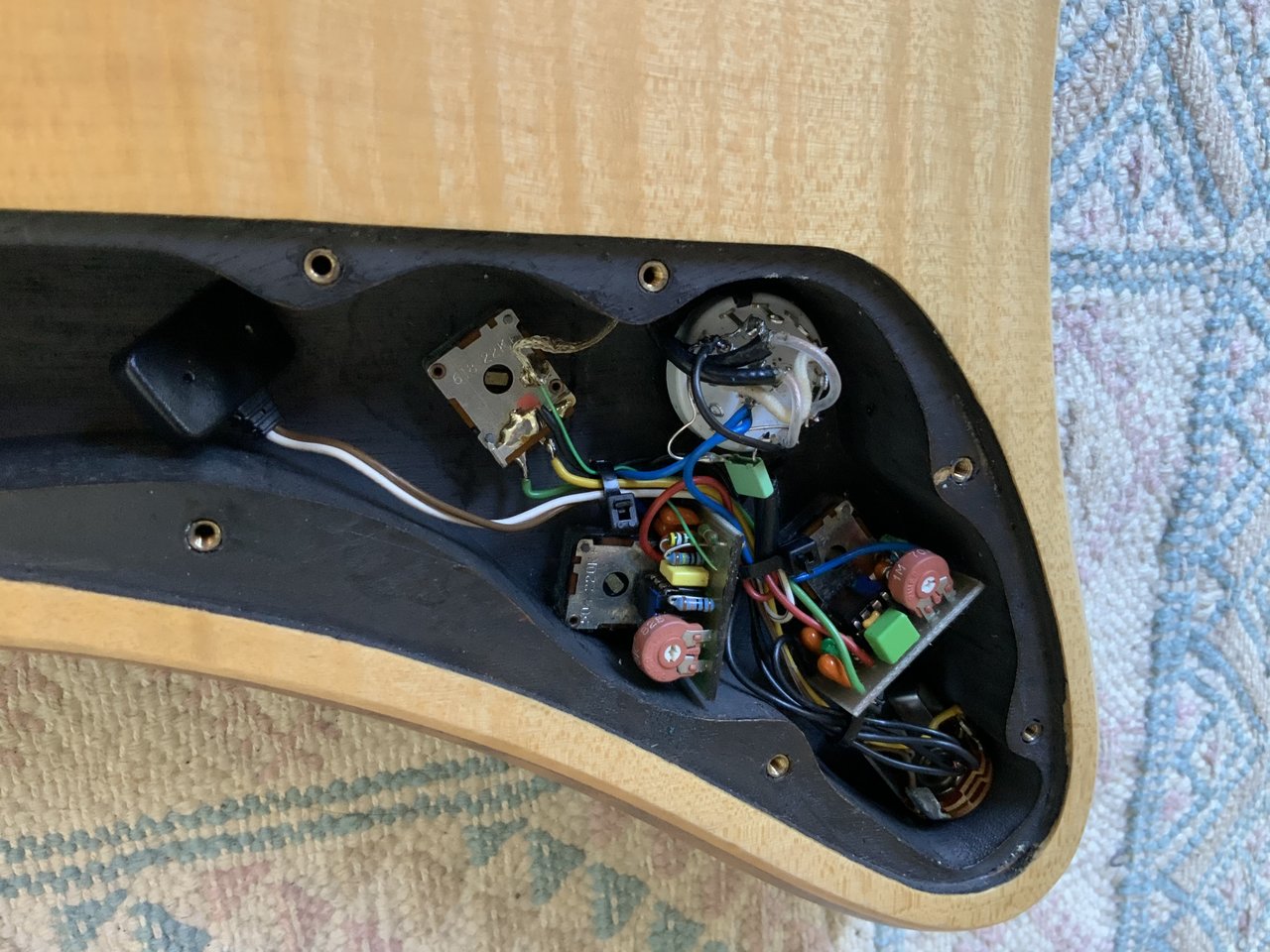 Ich habe ihn (ich könnte mich dafür in den A.... beissen) in Berlin zu einem Guitarren-Laden gebracht, zum reinigen und optional Ausstausch der def. Potis und des vierfach Schalters. Ohne Erfolg.