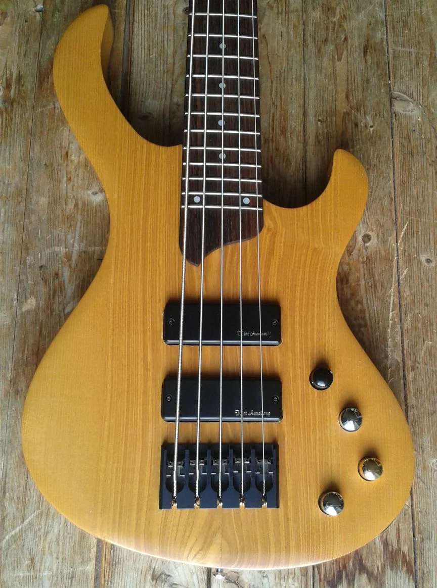 Die Elektronik ist momentan passiv & der Piezo nicht angeschlossen. Habe einige aktive & passive Systeme ausprobiert und finde der Sound des Basses kommt so am besten rüber.