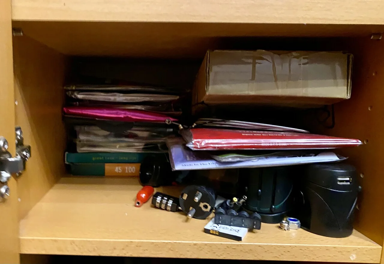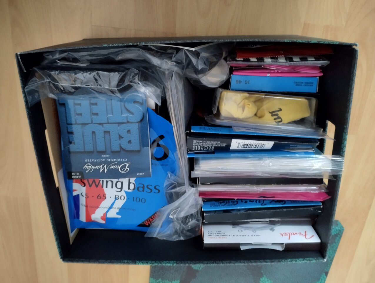 Hier nur die Saitenkiste. Eigentlich könnte ich die ganzen Pflegeprodukte auf die andere Seite einsortieren.
