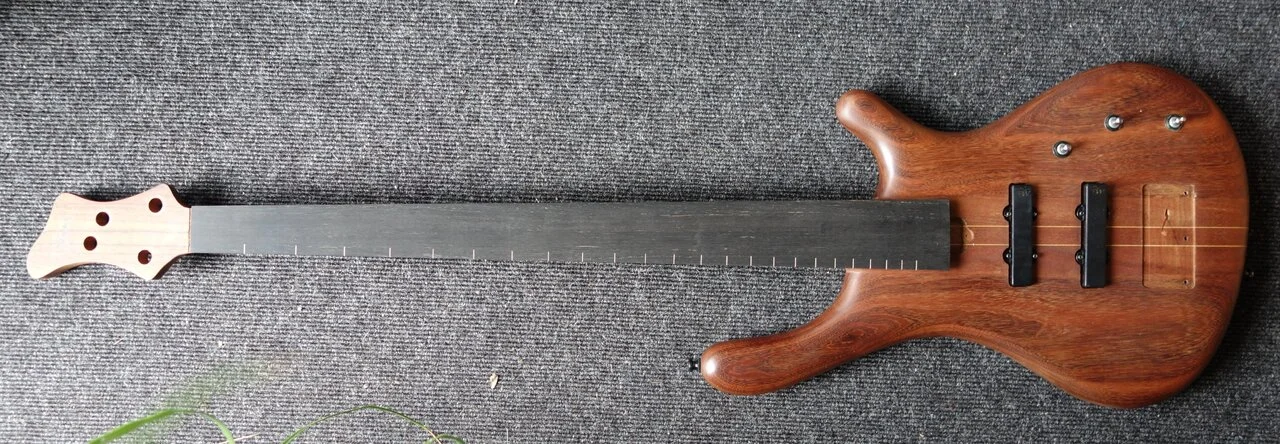 Ebenholz ist so hart, da muss nichts poliert werden, jedenfalls nicht im Sinne einer eigenen Schicht. Einfach schleifen, nach 1000er tut sich da auch nichts mehr wirklich. Dann mit einem Griffbrettöl Deiner Wahl (im Zweifel ein paar Tropfen Olivenöl aus der Küche) von Staub reinigen und einölen und gut ist. Alles, was anfängt zu glänzen sieht imho unnatürlich aus. Ich hatte eh verstanden, das soll fretless bleiben, da ist jede eigene Schicht auf dem Holz zum schnellen Verschleiss verdammt, es sei denn es ist wirklich harter 2K Lack so wie Jaco das angeblich gemacht hat. Das wäre aber überhaupt nicht meins und ich halte es bei Ebenholz auch für unnötig. Auch wenn Du Rounds spielst, der Verschleiss bewegt sich im üblichen Rahmen, also etwa wie normale (nicht Edelstahl) Bünde halt auch.Griffbrett ist drauf.... endlich, in der Suche kann ich nichts zum "Polieren von Ebenholz / Griffbrettern" finden, habt ihr Erfahrungen diesbezüglich ?