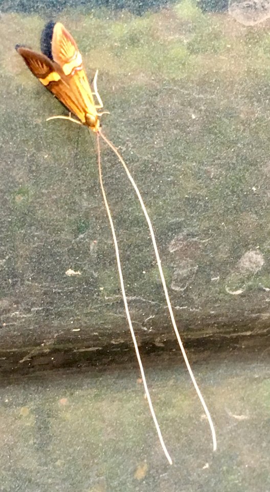 KopflastigAnhang anzeigen 217059 MSch..Foto, aber interessantes Tier: Eine Langhornmotte, die heute morgen bei uns gelandet ist. Wie es sich wohl so als Langhornmotte lebt?