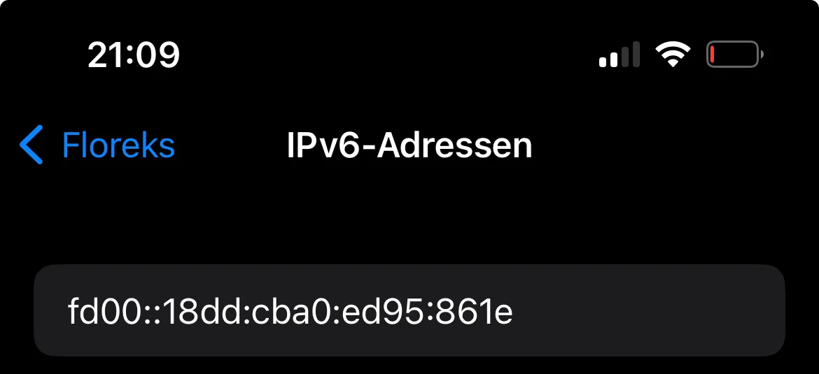 ...das ist eine private IPv6 Adresse (wahrscheinlich hinter Deinem persönlichen NAT oder jenem Deines Providers), welche nicht geroutet wird. Auf jeden Fall wird sie nicht nach IPv4 und ins Internet übersetzt. Mit dieser IP Adressangabe werden Dir weder Martin noch Fabian helfen können, Du musst ihnen Deine IP (v4 oder v6) _vor_ und nicht _hinter_ dem NAT angeben können. Im Zweifel, eine Seite wie https://www.whatismyip.com/ ansteuern und den output Martin oder Fabian senden NICHT! HIER POSTEN!Hallo, ich habe auch Probleme (wohne in Bonn). War aber im Urlaub (Madeira, Polen, Lissabon, Mailand, Utrecht). Normale IP daheim ist angehängt. Weiß nicht, was es für ein Problem gibt?