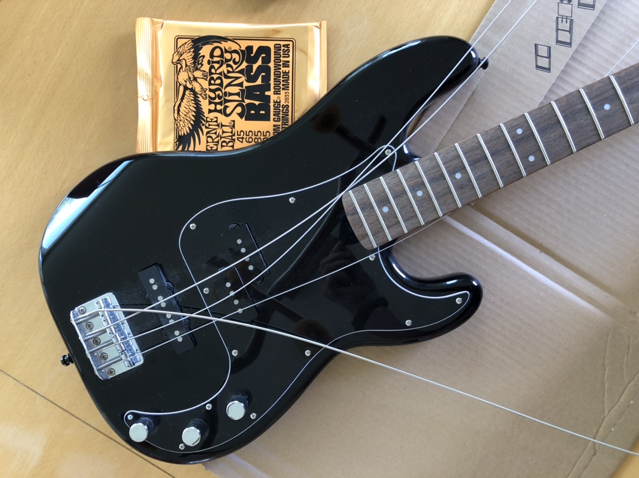 Die von @TomW angebotenen Pickups kamen bereits gestern bei mir an, was mich natürlich etwas unter Zugzwang gesetzt hat. Schliesslich hatte ich mir für den Samstag einiges vorgenommen, der Garten nimmt keine Rücksicht auf meine Befindlichkeiten. Also am Samstag die unaufschiebbaren Aufgaben tapfer erledigt und zumindest die neuen Pickups mal pro Forma angeschlossen und unter den Saiten durchgepfriemelt und die eigentliche Arbeit auf den Sonntag verschoben. Neben dem Austausch der Pickups wollte ich bei der Gelegenheit auch neue Saiten aufziehen (waren immer noch die originalen drauf) und das Frettboard etwas einölen.