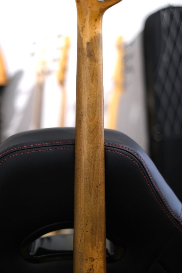 Btw: So sieht das bei meienrm Dirnt aus. Ich finde nicht, dass es unnatürlich aussieht. Das hellweiße kommt vom Licht. In Echt is es dunkler, und dunkelt ja nach. Habe den Halses der ja eh schon Roadworn war, mit groben Schleifpapier nur noch etwas angeraut. Ich mag das Feeling halt.