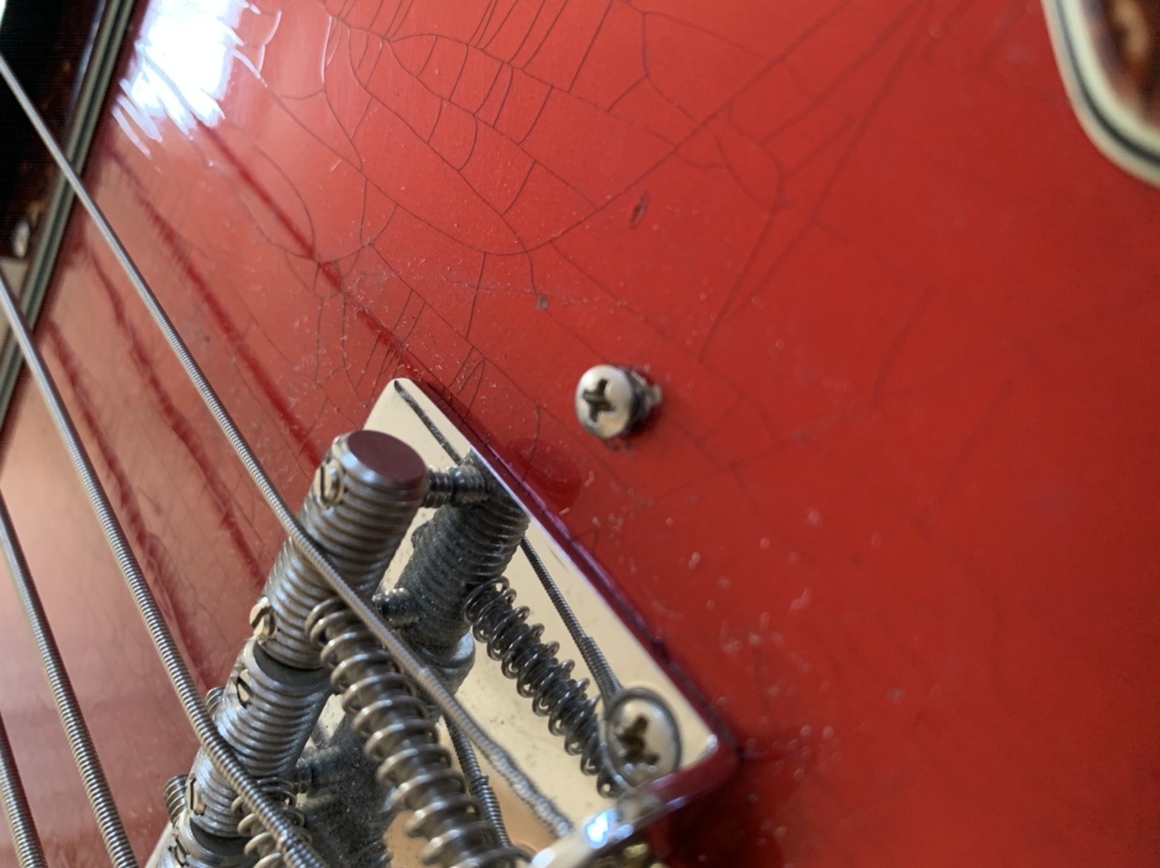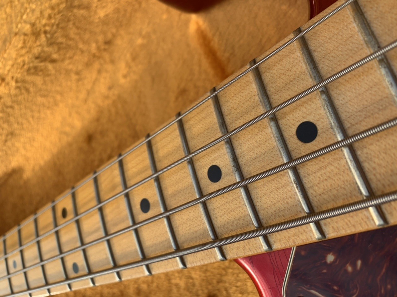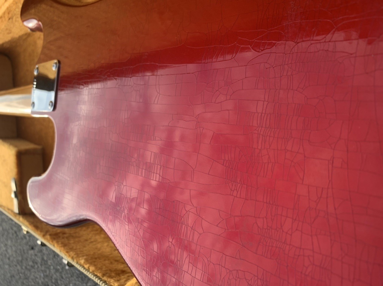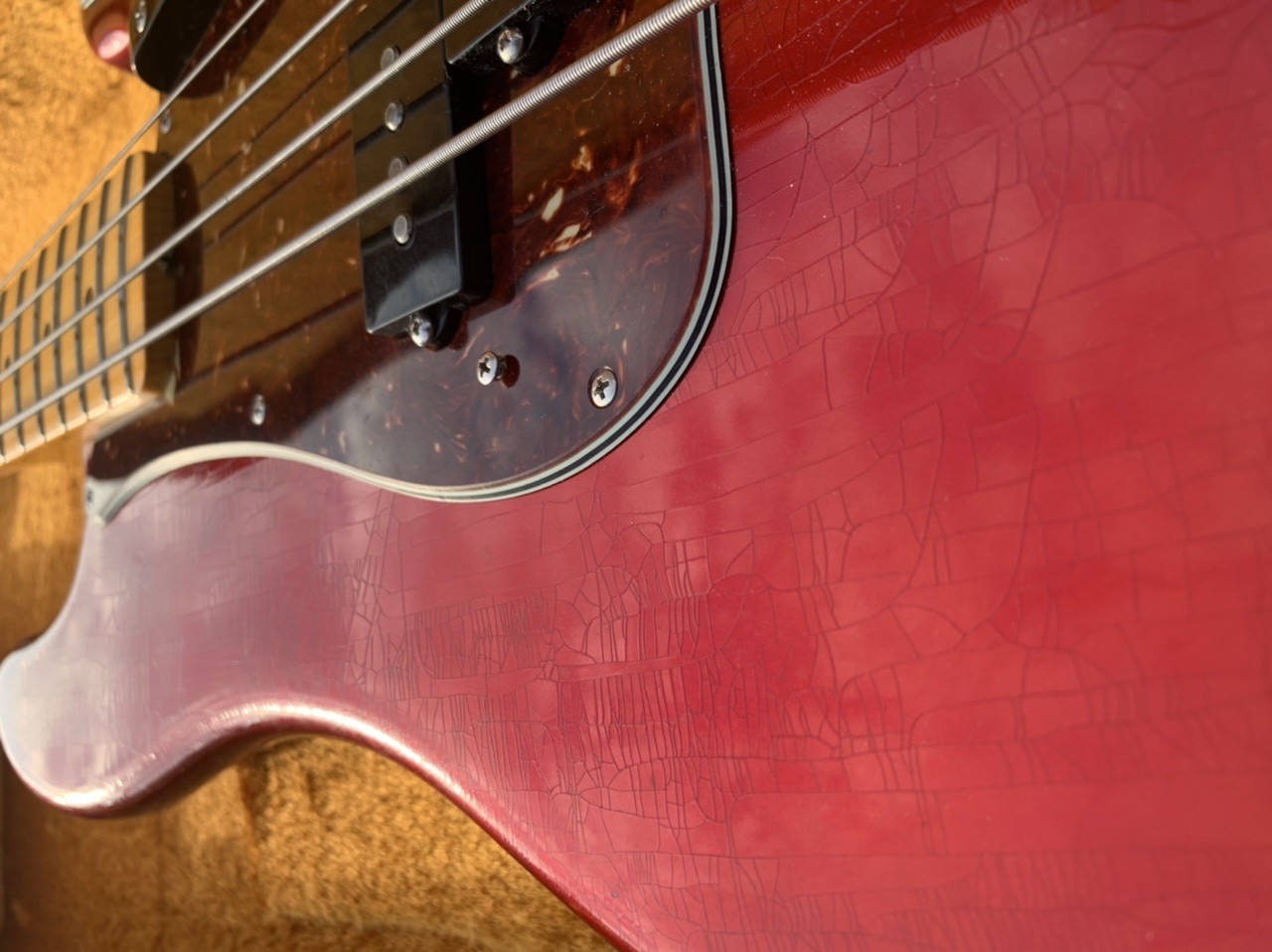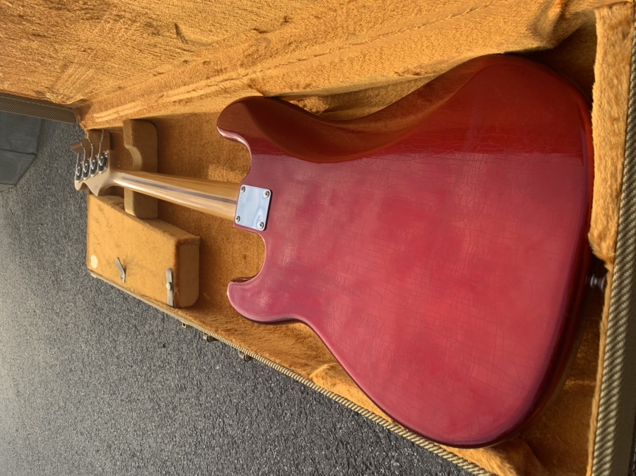 Alder body, one piece maple neck with J "U" Profil (No baseball bat here). Candy Apple Red with gorgeous checking (closet classic..). Lightweight at 3,7kg.