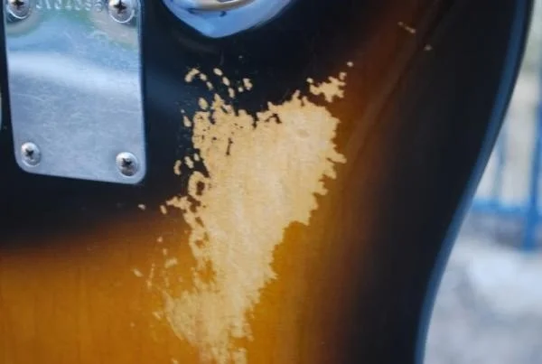 Obendrein gibt es keine Trussrod schnitzen in den Körper, um einfachen Zugriff auf trussrod zu erhalten, wie die meisten JV Squiers dies haben (Dies ist unter dem Pickguard)