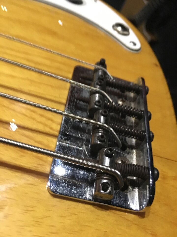 Bekommen habe ich einen Bass mit 6 (!) Feststellschrauben am Hals. Die Saitenlage war sehr bescheiden. Also habe ich den Bass zerlegt, um zu sehen, was sich besser einstellen lässt. Dabei wurde deutlich, dass schon viele Bassisten vor mir auf die gleiche Idee gekommen waren. Ich habe dann den Preci wieder zusammengeschraubt - ungefähr so wie er vorher war und damit gespielt. Es ging, aber es war ungefähr wie eine Bergwanderung mit Chucks.