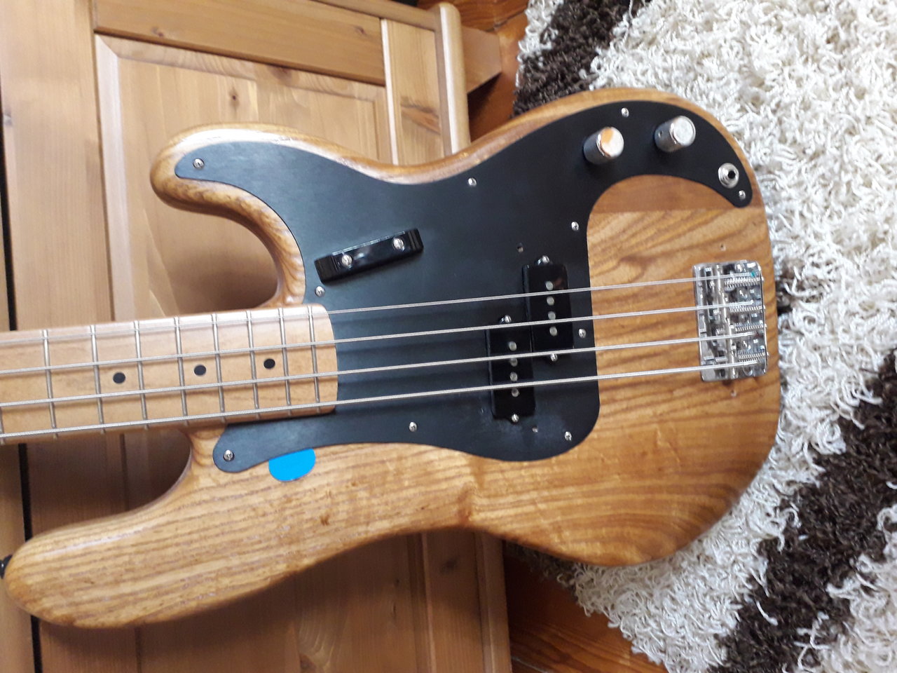 Noch nie habe ich einen naturfarbenen Body (scheint der Maserung nach Esche zu sein?) mit Rosewood-Griffbrett gesehen?