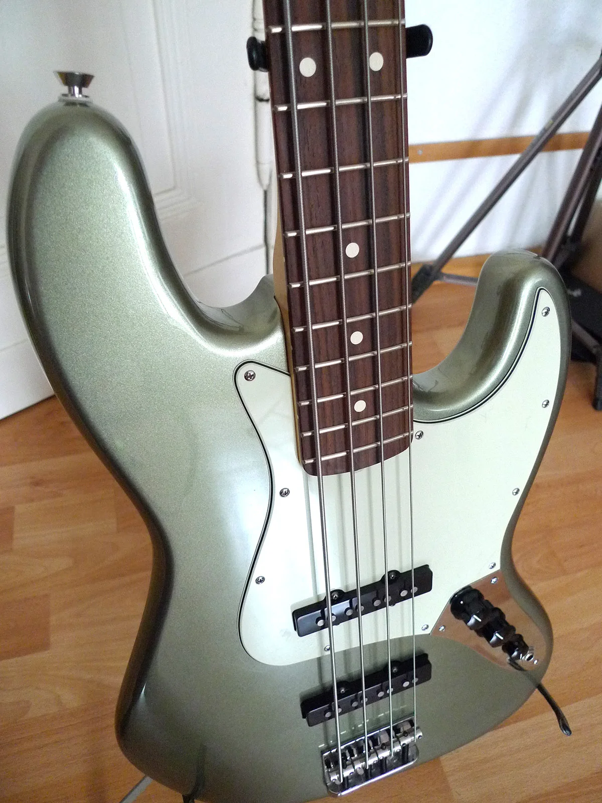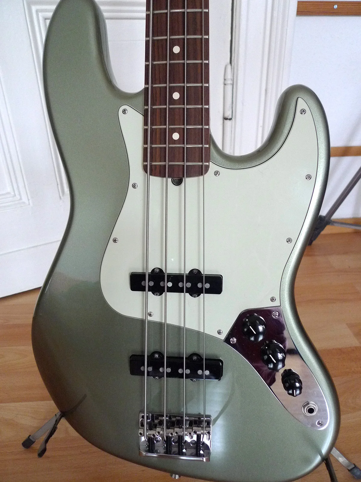 Verkaufe meinen Fender American Standard Jazz Bass der 2012 Serie mit Erle-Korpus, Palisander-Griffbrett, Fender Custom Shop 60s Classic Jazz Bass Pickups in der Farbe Jade Pearl Metallic. Kaum Gebrauchsspuren. Einziger Mangel sind zwei winzige Macken im Lack am Korpus. Gewicht 4.1 kg. Anspielen in Berlin ist möglich. Versand für 15 Euro innerhalb Deutschlands. Ohne Koffer.