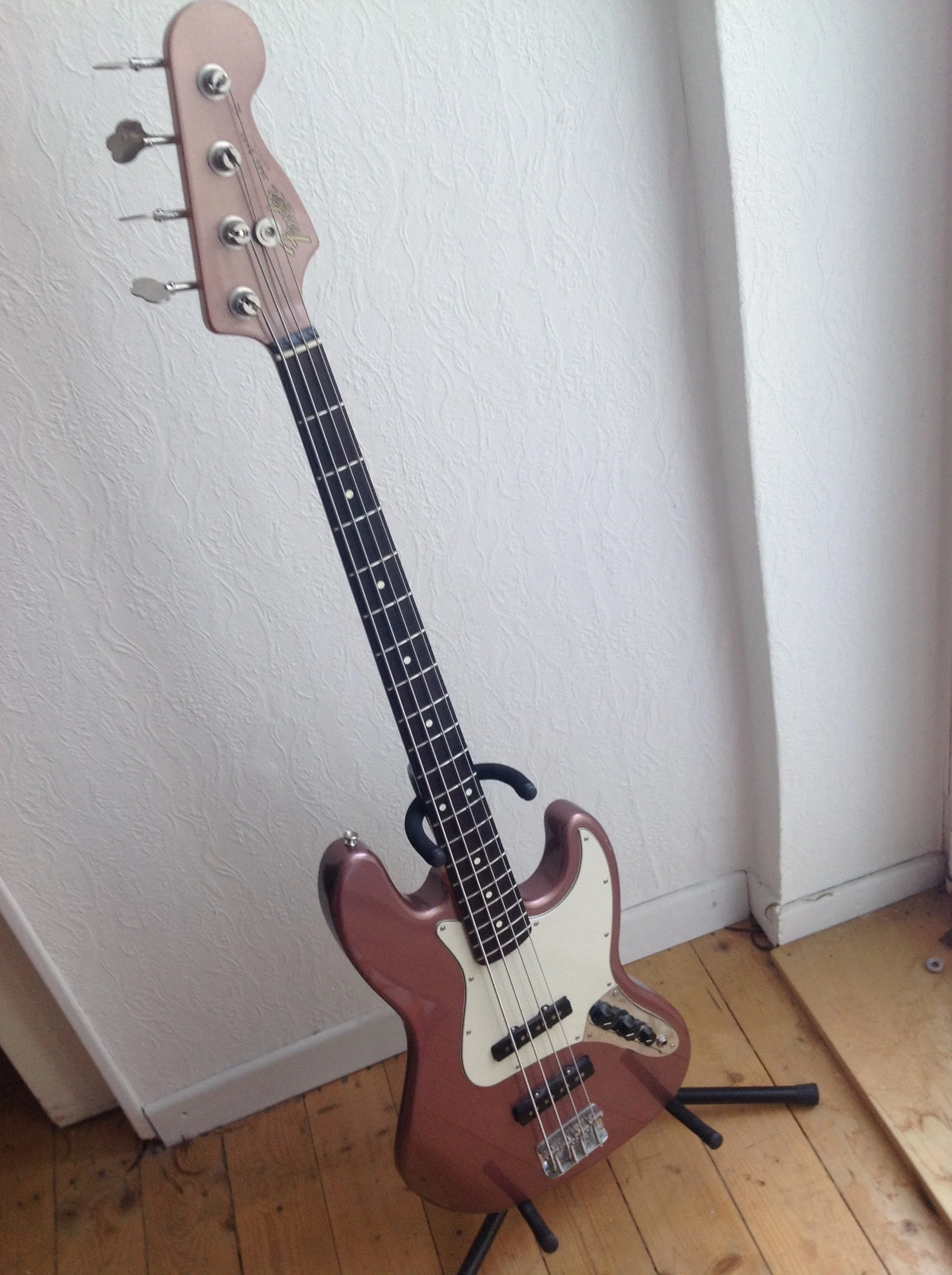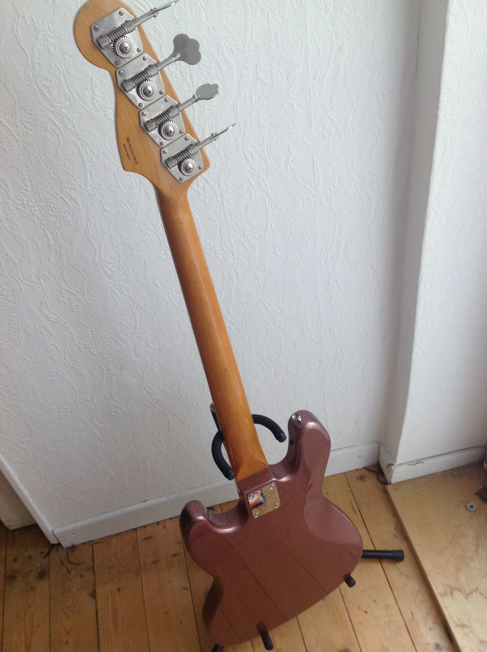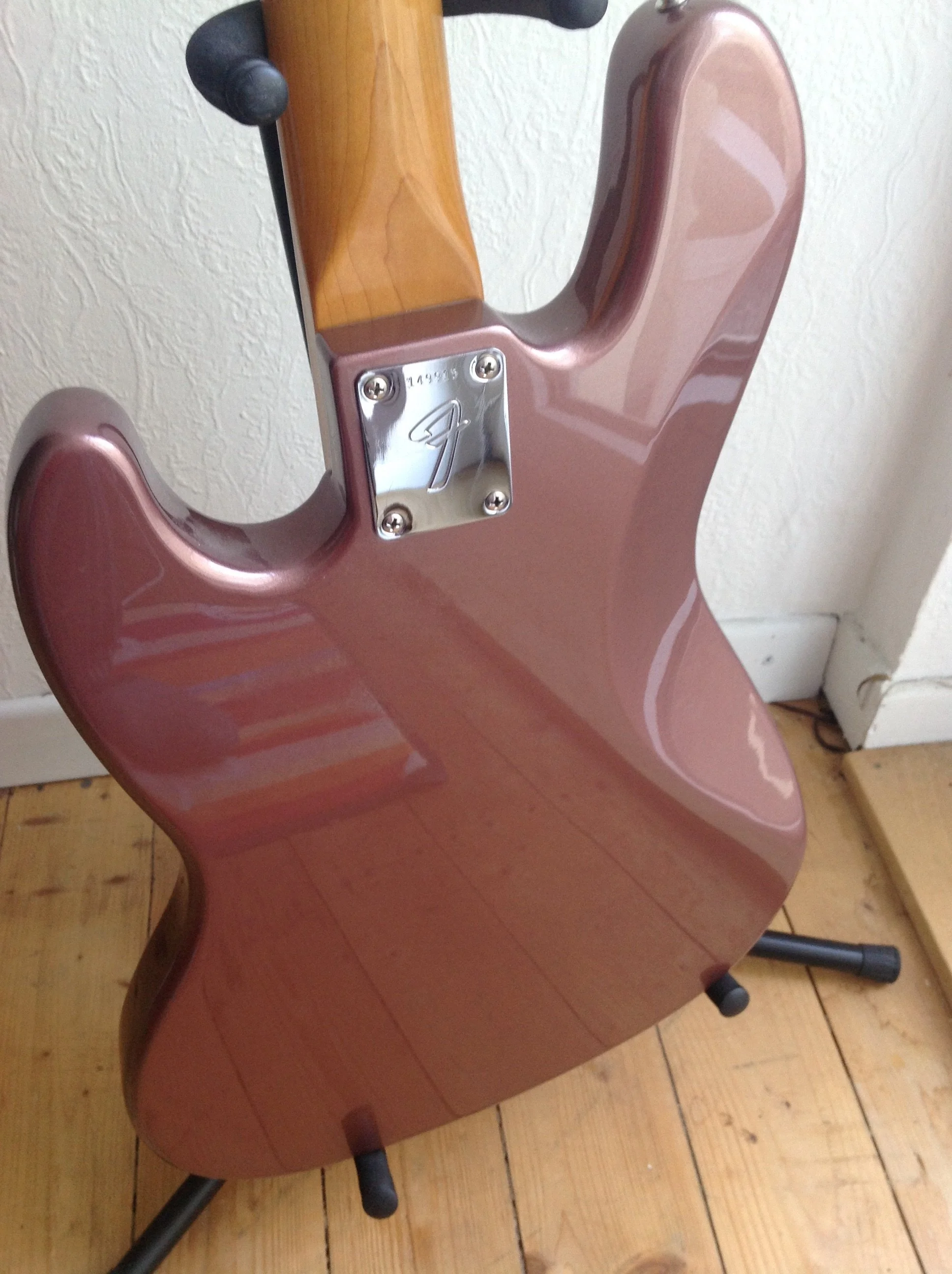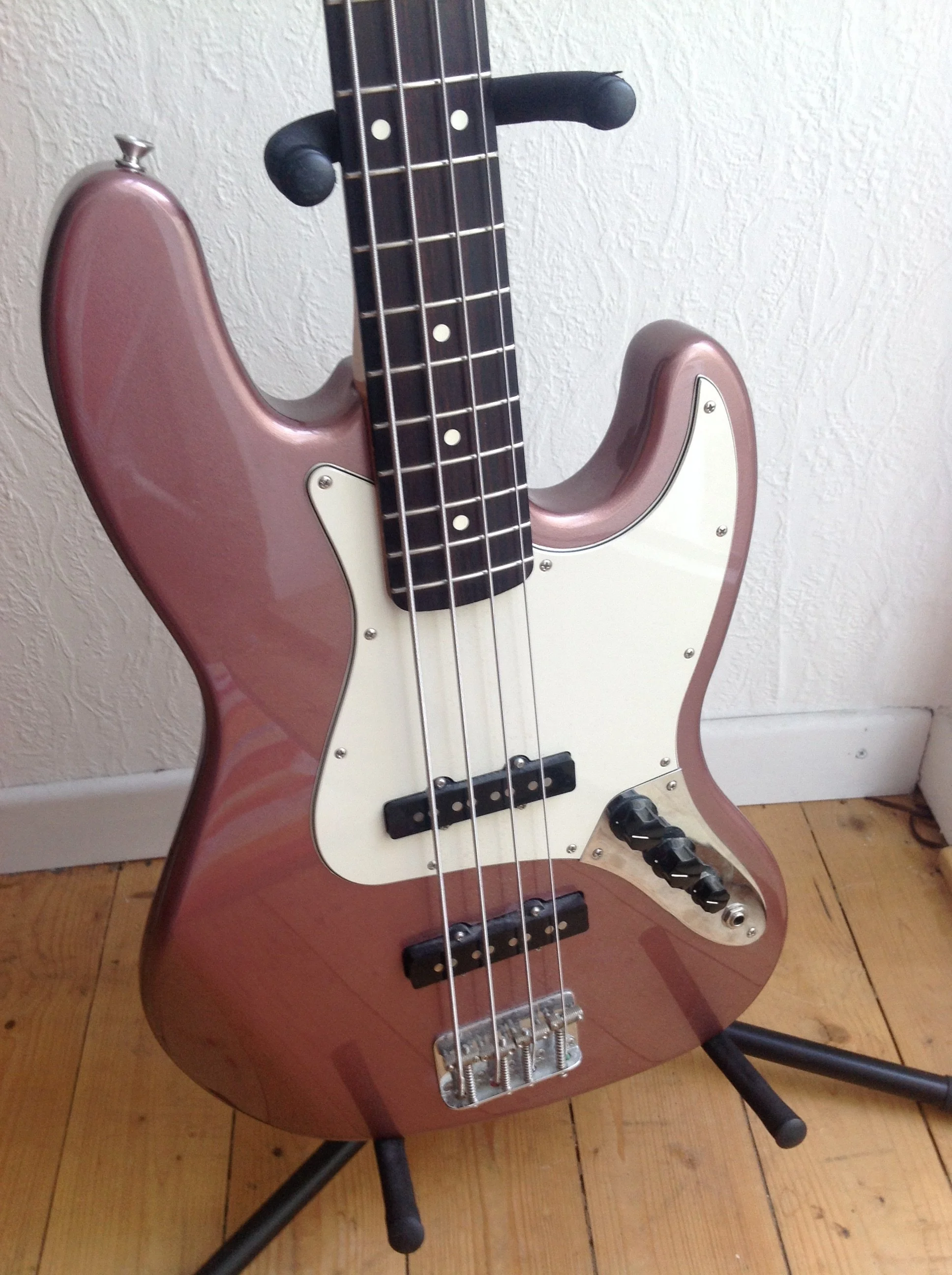 Fender Jazzbass MIM, seltene Farbe Burgundy Mist, ein lackierter, minimale Gebrauchsspuren, technisch tipptopp, unverbastelt. Standort Hannover.