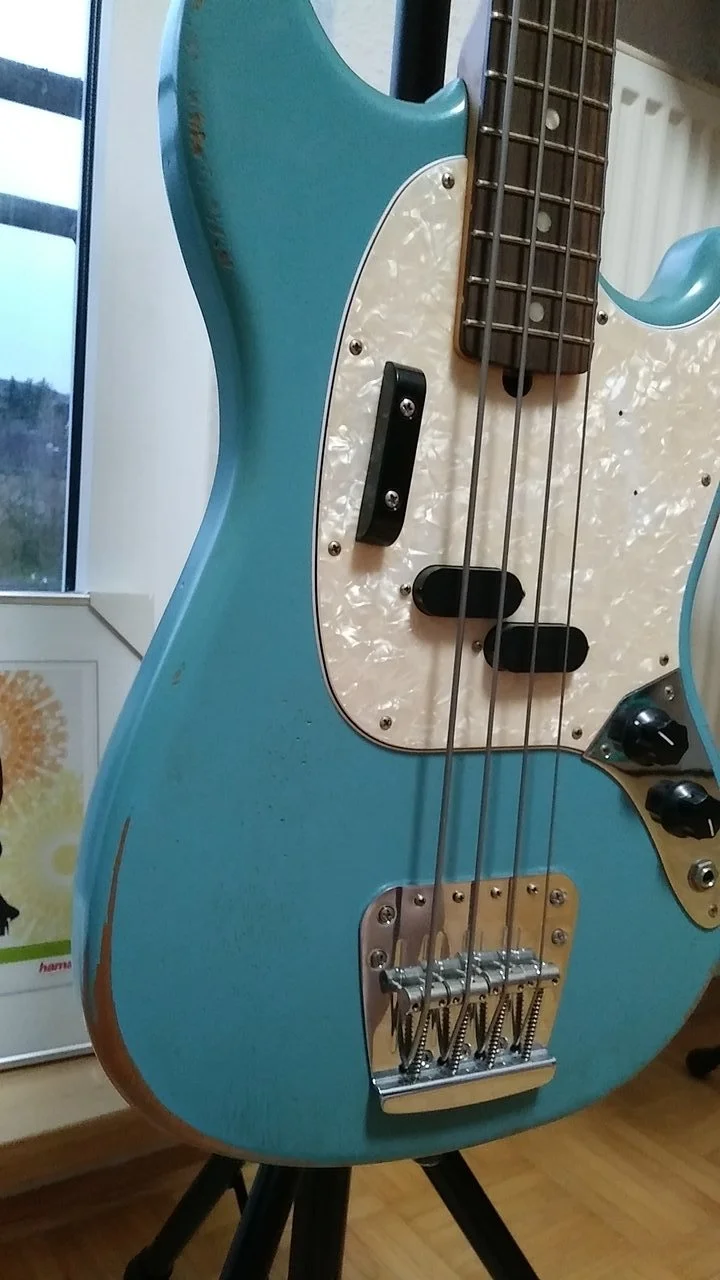 Stell ihn doch einfach so ein, dass du glücklich/zufrieden mit der Einstellung bist. Ich mach das so, dass ich ihn mit Plektrum in jedem Bund ohne Schnarren spielen kann.Seit ein paar Tagen ist der JMJ-Mustang bei mit eingezogen. Bespielbarkeit und Sound finde ich top, wollte den Bass jetzt auch einstellen da die Werksseitige Einstellung eher schwach war. Da es mein erster Short-Scale ist, bin ich etwas ratlos ob ich bei der Halskrümmung wie gewohnt vorgehen kann. Hab jetzt im 7. Bund Kreditkartendicke bei heruntergedrückten Saiten und im 12. Bund ca. 27mm bei offenen Saiten. Damit lässt es sich gut spielen, schnarrt aber gerade in den höheren Lagen wenn ich etwas stärker reingreife. Da die Saiten nicht so straff sind wie bei Jazz oder P, scheint es mir allerdings irgendwie logisch, dass es bei ähnlicher Saitenlage schneller schnarrt...