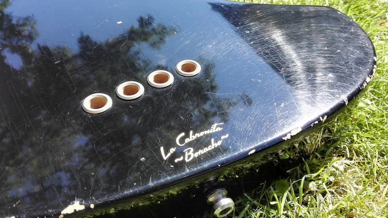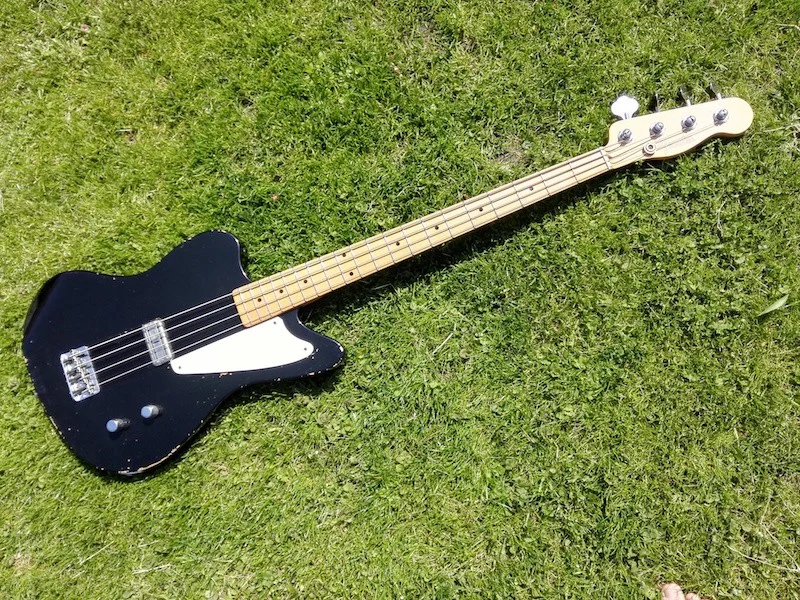 Der Cabronita Boracho wurde aus einem umgekehrten Jazzmaster Body und einem Fender Precision Telecaster Hals und hammer klingenden Custom TV Jones Thunderblade Pickups (Das Ding röhrt wie mir kein anderes bekanntes Bass-PU) von der Fender Custom Shop Schmiede gebaut werden.