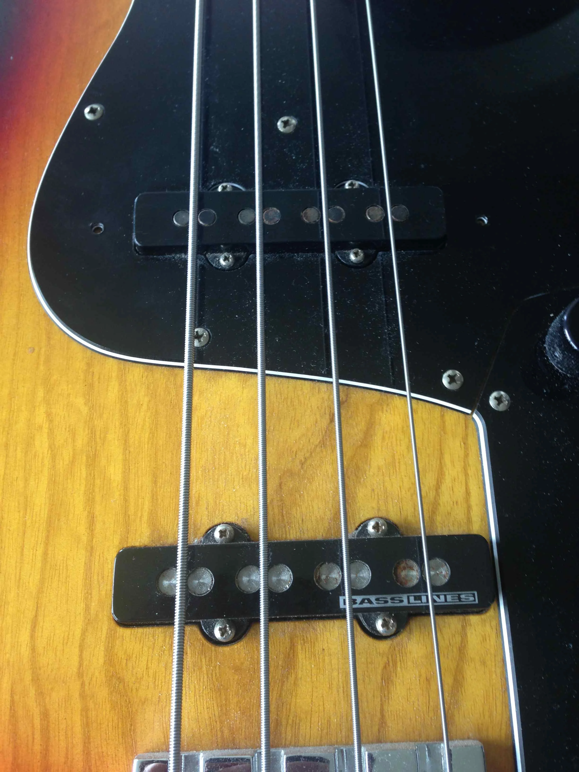Erweitert habe ich den Bass um eine Sadowsky Elektronik um auch im passiven Betrieb eine Höhenblende zu haben - damit ist der typische Jazz-Bass Sound möglich - die originale Elektronik kann ich aber auch gerne wieder einbauen. Außerdem sind aktuell ein Antiquity am Hals und ein Quarter Pound am Steg eingebaut, beides von Seymour Duncan.