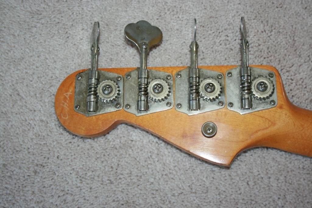 Da es aber für die Hand schwer ist bei einem in der Waagerechten gehaltenen Instrument (was keine Violine ist, deren Saitenspannung geringer ist) die Wirbel zu drehen, weil man den Daumen dafür nicht zur Hilfe nehmen kann (beim "Upright" Bass geht das natürlicher von statten, weil man mit dem Daumen von oben in Richtung Brücke/Steg drücken kann) wurden die Mechaniken quasi umgedreht.