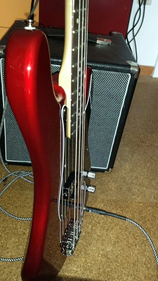 Der Sound ging direkt in die Richtigung die ich mir vorgestellt habe: Gedrückt, geschoben, sehr spürbar! Auch habe ich mit der Tonblende experentiert. Tonblende komplett zu hat mir sehr gefallen. Schöner "dumpfer" Sound der zum grooven einlädt. Auch mit geöffneter Tonblende haben die Saiten kaum gescheppert. Auch das hat mich sehr zum positiven Überrascht. Den Testbass hätte ich so aber niemals gekauft, da er in Candy Apple Red war