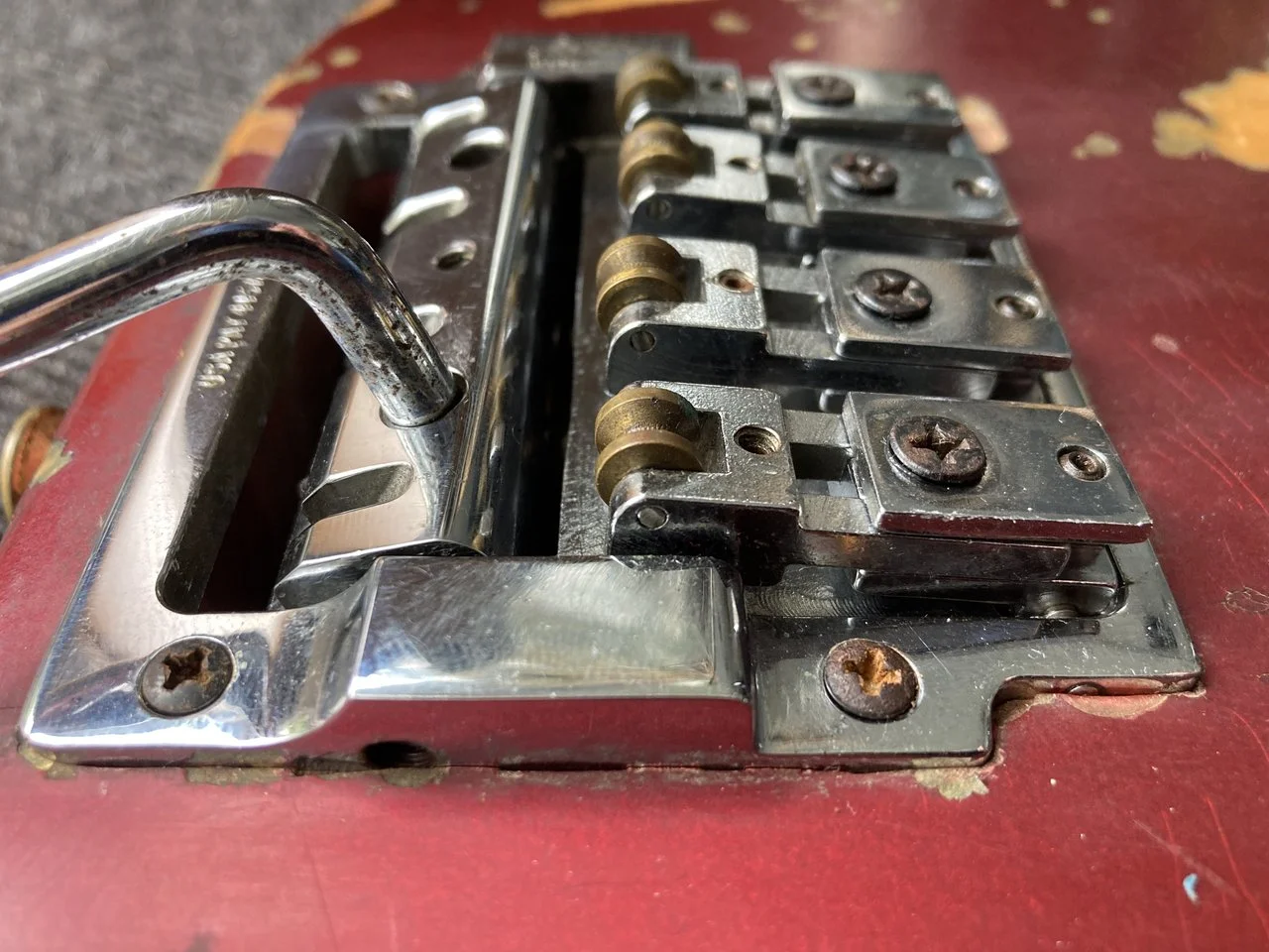 Das Holz aus dem der Skunkstripe ist ist geschrumpft, daher die Risse.Trussrod kommt durch den Skunkstripe raus,