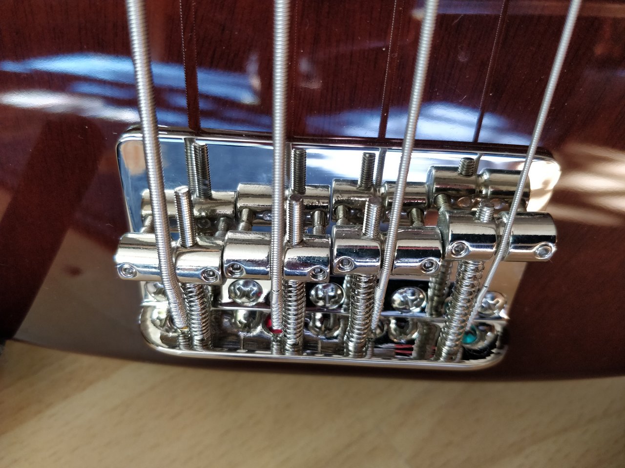 Und in der Tat, die Bilder täuschen nicht. Der Walnut-Body sieht wirklich klasse aus, ebenso der Hals, welcher mit seinem Taint, wie "roasted" wirkt. Der Bass selber ist, zumindest äußerlich betrachtet, tadellos verarbeitet.