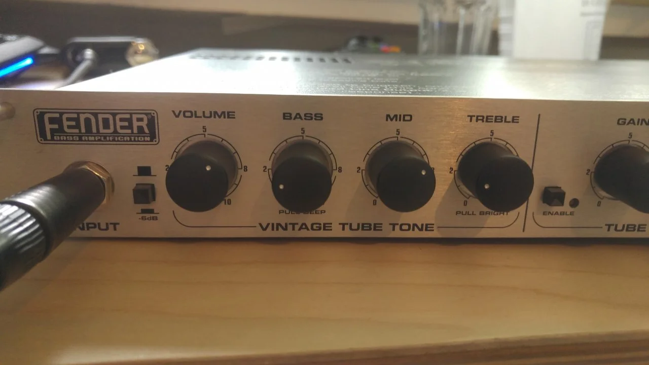 passiver Bass (bereits verschiedene getestet) -> Fender TBP1 -> Interface (wahlweise auch Endstufe + Box)