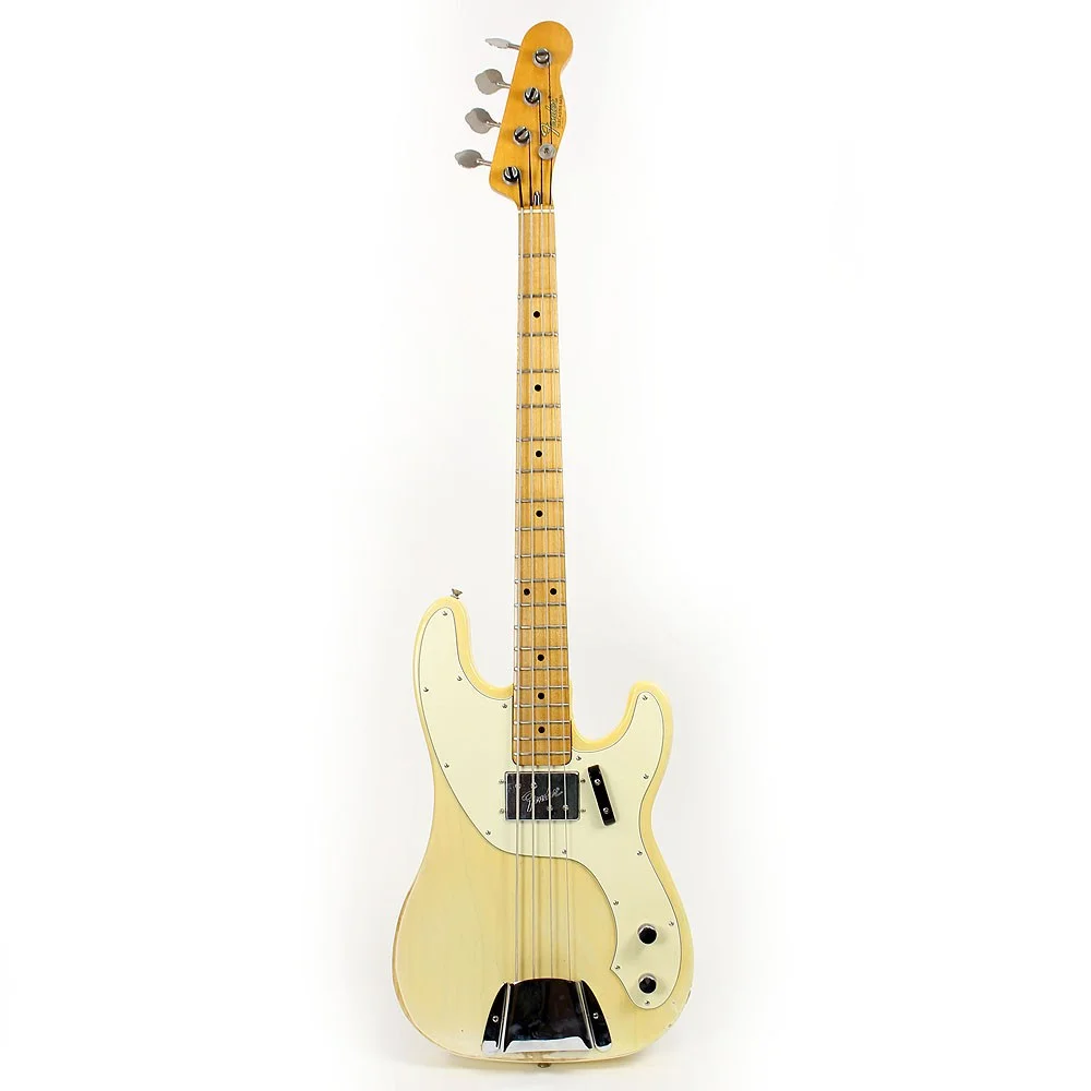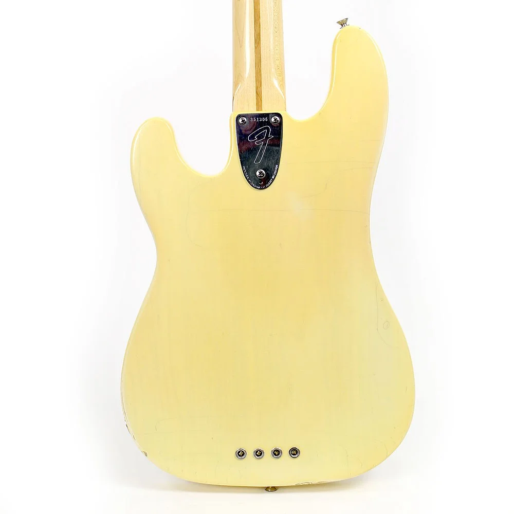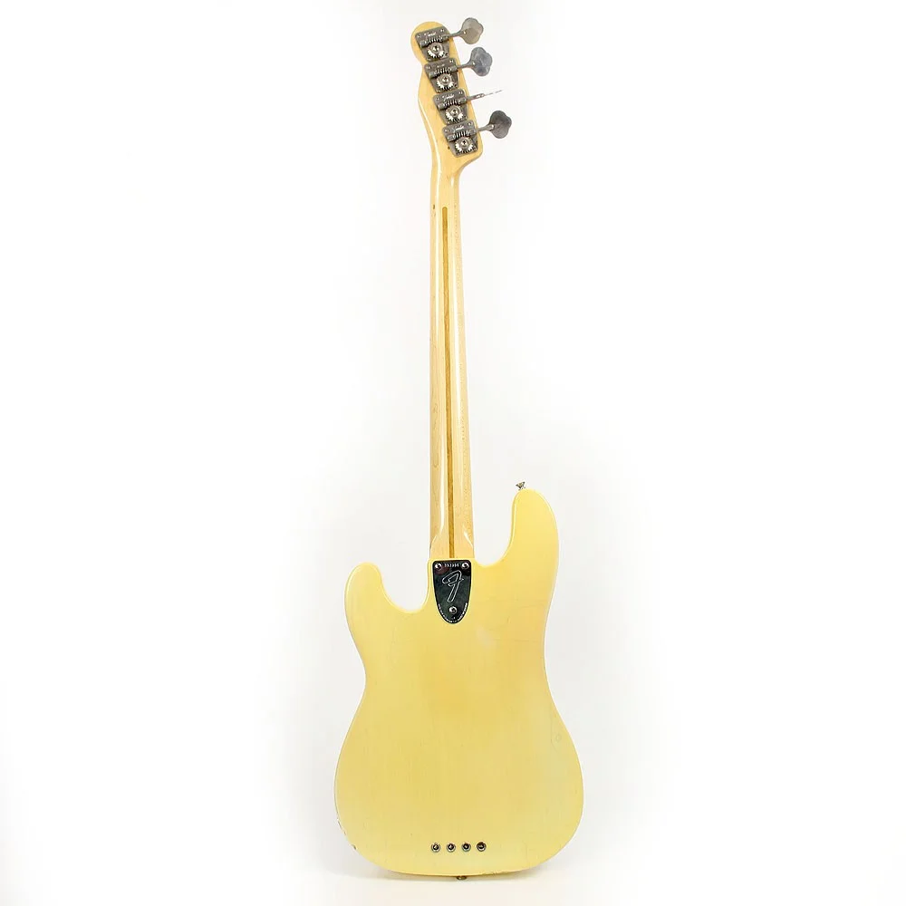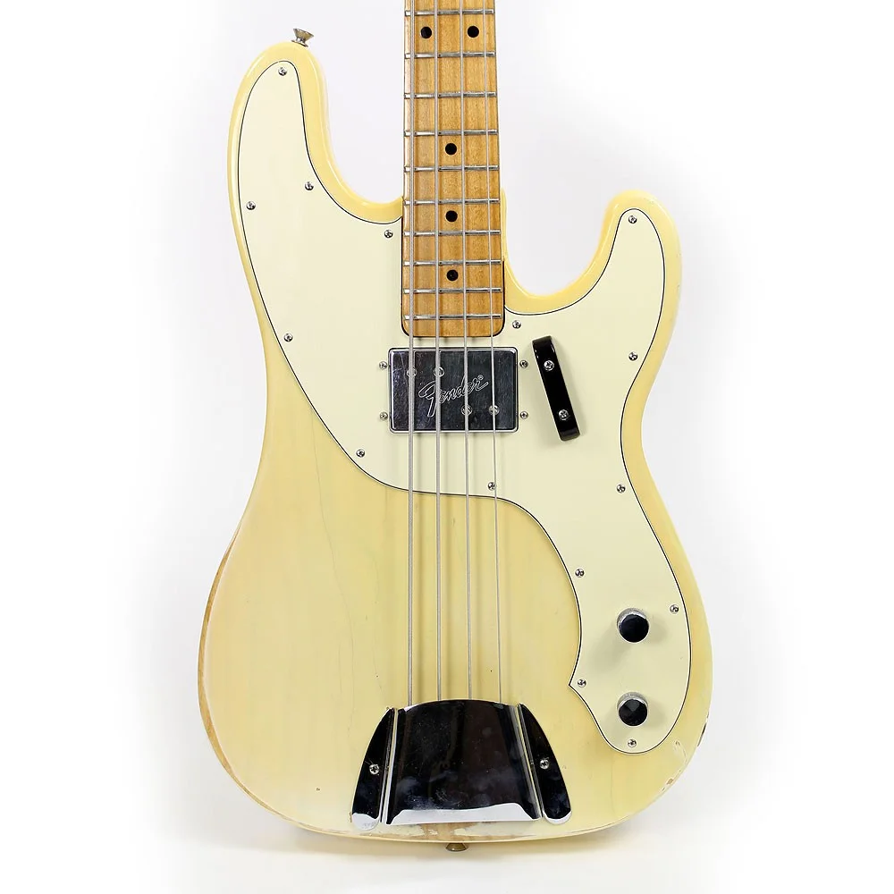 Korpus: Solide Esche in „trans blonde“ finish mit Cream Pickguard, welches sich ebenso im perfektem Zustand befindet. Saiten sind „true hole body“ was dem Bass ein riesiges Sustain verleitet.