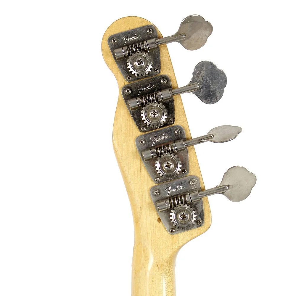 Hals: Ahorn Hals und Griffbrett mit schwarzen Dot-Inlays. Die Bünde haben für das bereits lange Leben vom Bass leichte Gebrauchspuren, die weder stören noch eine Revision benötigen. Die Mechanik (Tuner) sind in perfektem Zustand und arbeiten sauber. Der Hals ist perfekt gerade und Trussrod arbeitet ebenso perfekt, so dass sich der Hals ohne jeglichen Kraftaufwand lösen oder anziehen lässt.