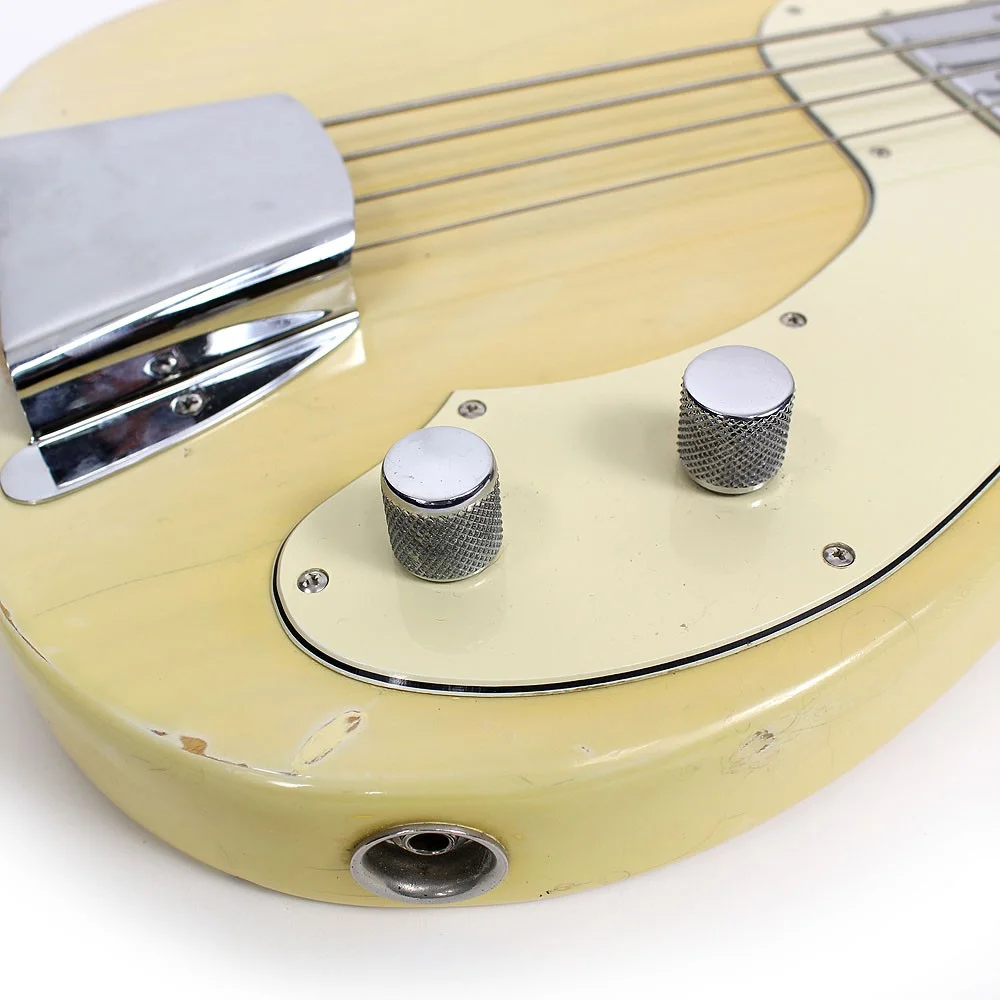 Gefertigt wurde der Bass in ultra coolem „Trans Blonde“. Der Lack hat einige altersbedinge Gebrauchspuren, was aber meiner Meinung bei einem 42 jährigen Instrument auch dazugehört und auch davon zeugt dass das Instrument häufig gespielt wurde.