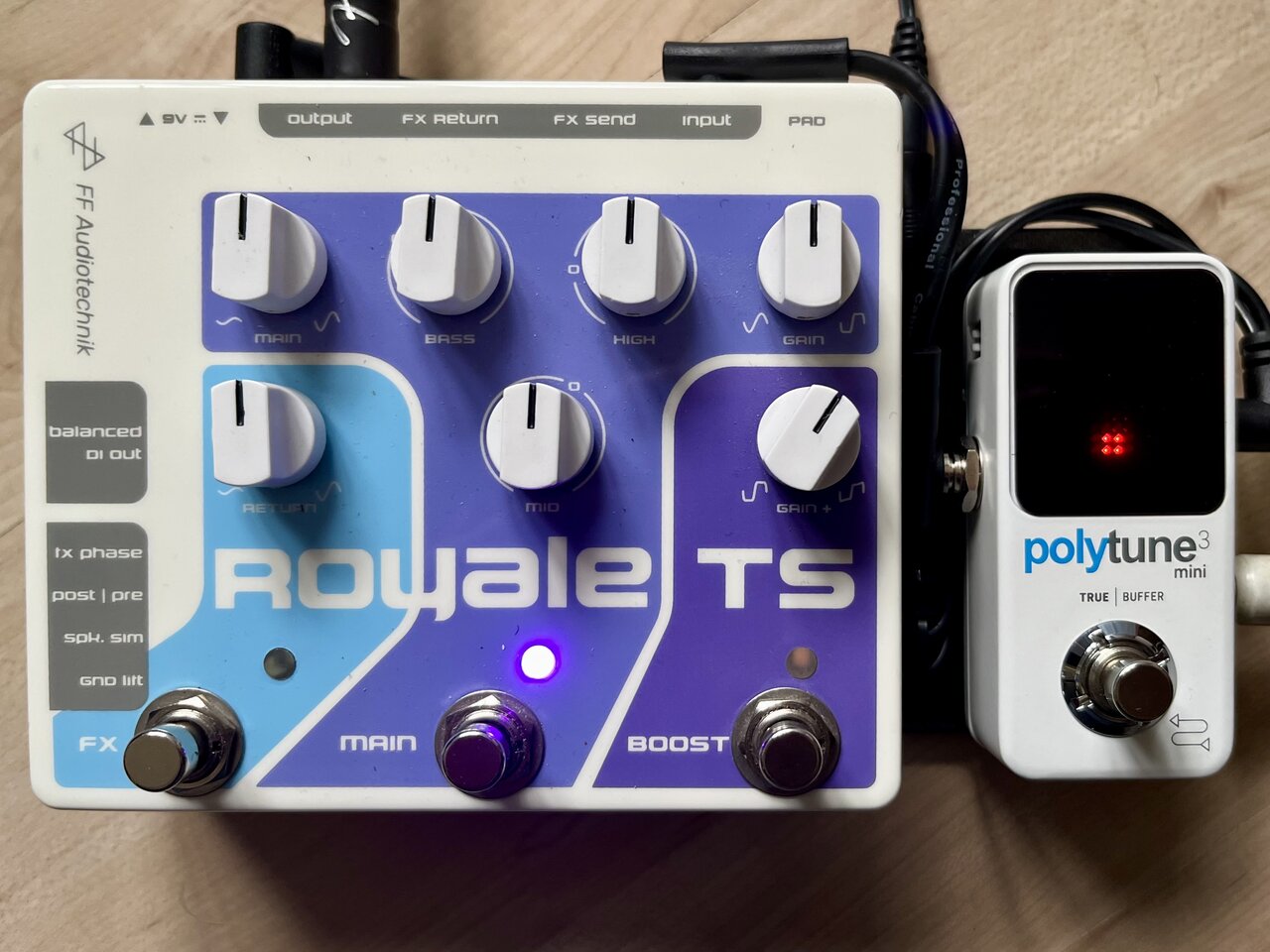 [ EXTENDED VERSION: Das ist dann noch was eskaliert, weil ich den Sound dann auch gar nicht mehr verfälscht haben wollte durch meine färbenden Amps. Da musste ich mir kurz noch nen Glockenklang Amp und ne FMC-Box kaufen, die der RTS jetzt laut machen. Da ist aber auch alles aus, so dass ich den RTS- Sound weitestgehend unverfälscht auch in der Band hab. EXTENDED VERSION ENDE ]