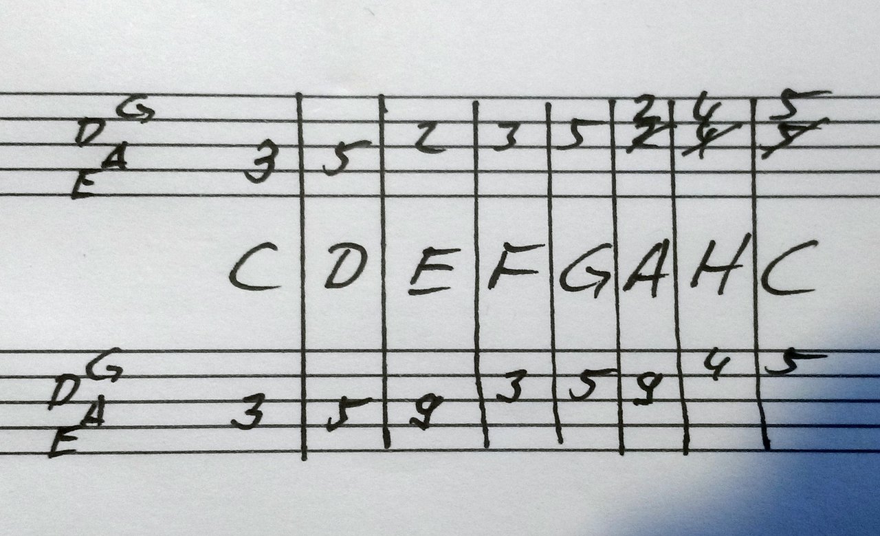 Zum einen führen mehrere Wege nach Rom und sich nur auf ein Griffschema/Fingersatz zu beschränken, kann einen irgendwann frustrieren. Ich bin ein absoluter Notenfetischist und mußte lernen, wieder die Ohren aufzumachen. Das hilft mehr als ein stures Schema zu pauken und damit über das Griffbrett zu rutschen.