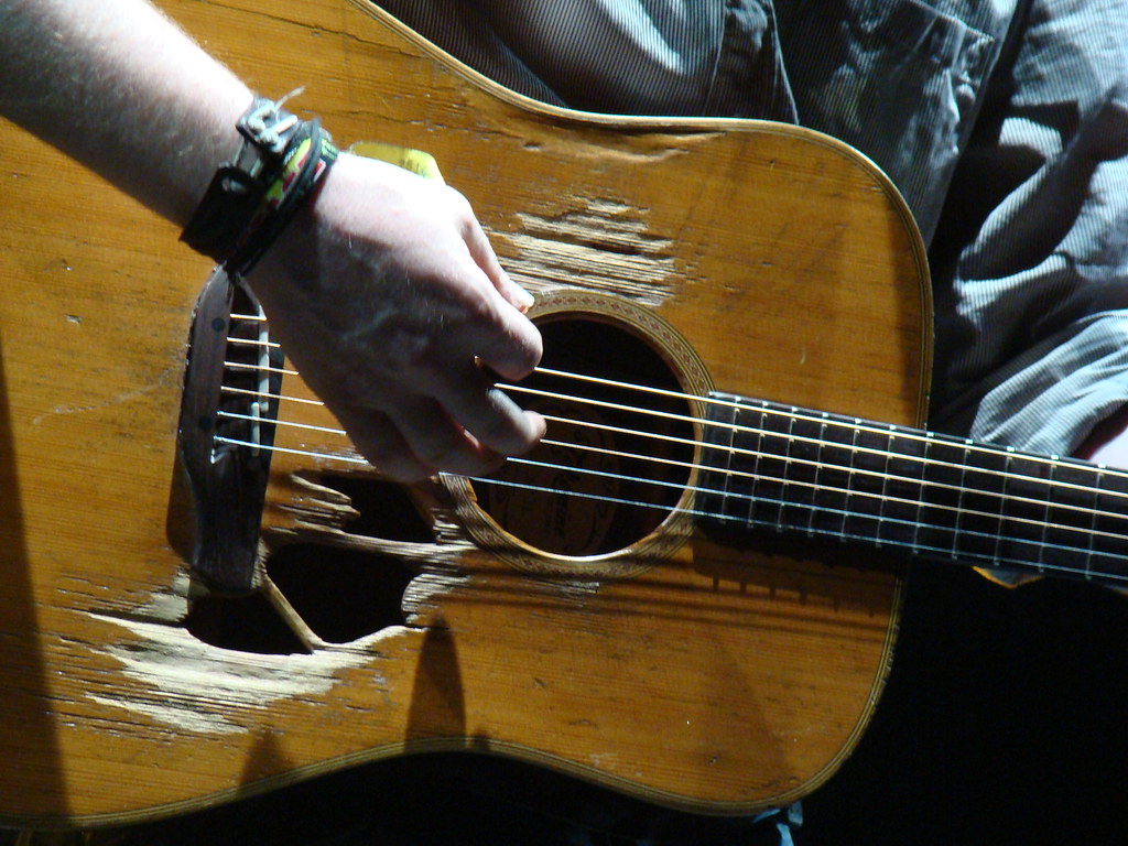 Interessante Spieltechnik,die Klampfe von ihm hat darunter auch schon gut gelitten![]()