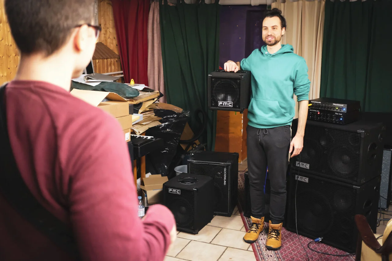 Der Bassicer Malte Regah suchte nach einer Möglichkeit, 10er und 14er FMC Boxen zu testen und wir konnten uns schnell zum Rundumschlag im Kölner Proberaum treffen, da als Dritter noch Dario am Start war und eine 1x10er Box mitbrachte.