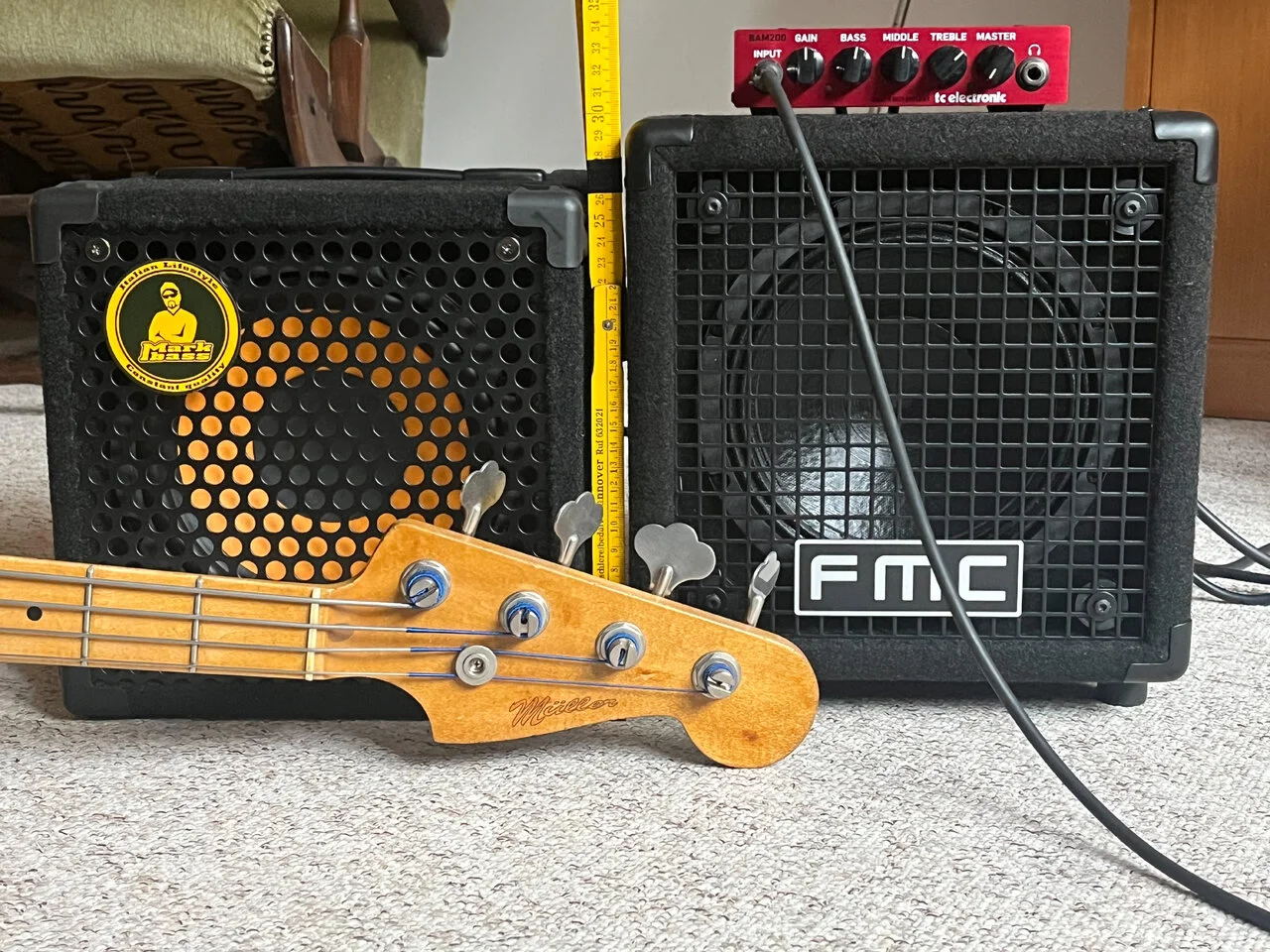 Inwiefern die 300W beim FMC mit den 60W beim Markbass vergleichbar sind, kann ich nicht genau beurteilen, dafür habe ich technisch zu wenig Ahnung. Geht jedenfalls auch einigermaßen laut.