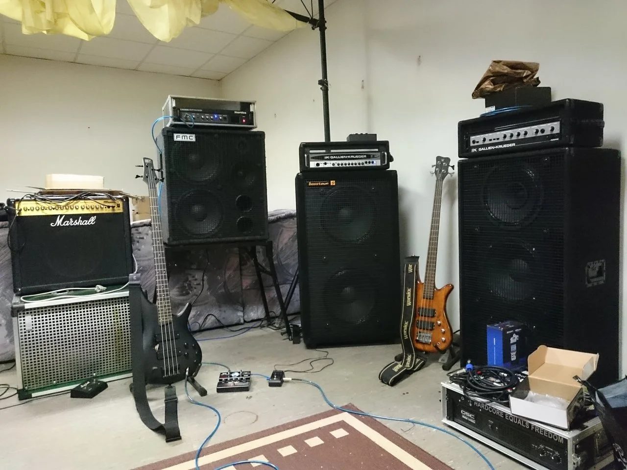 Boxen gehören wenn man sie im Bandbuss transportiert mindestens in eine Schutzhülle,