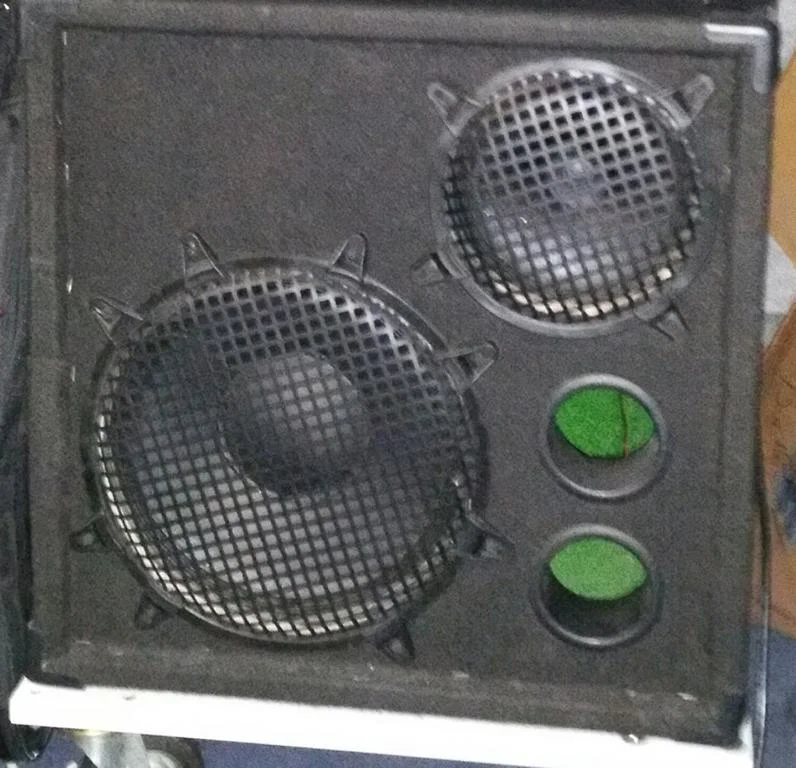 Gerade keine bessere Aufnahme zur Hand, aber was man am Lautsprecherrand hell erkennen kann, ist das Holz - dh. man sieht zuerst Holz und dann kommt der Lautsprecher. Um hier neue Lautsprecher einzusetzen, bleibt mir wohl nichts anderes übrig, als die Box hinten zu öffnen, oder (dabei könnte ich auch evtl. das grüne Fussballfeld in der Box bewundern bzw. ersetzen?!)?
