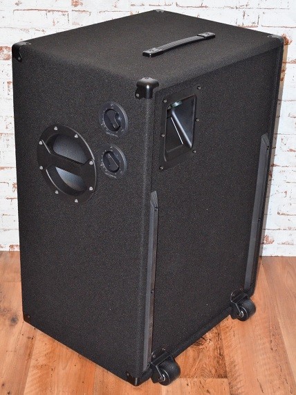Wir haben für den Vorführraum/Lagerverkauf eine schöne 212MH N2 im Hochformat gebaut. Die hat 600 Watt RMS, 4 Ohm, regelb. Mitteltöner und regelb. Hochtöner. Gewicht ist 24,5 Kg mit den Rollen, Kufen und Griffen, ohne wird sie um die 24 wiegen. Griffe oben und unten. Maße sind Soundmäßig natürlich extrem flexibel mit dieser Luxus Obertonabteilung. Maße sind 80h 54b 41t. Die Box steht leicht angeschrägt da die vorderen Füße etwas höher sind.