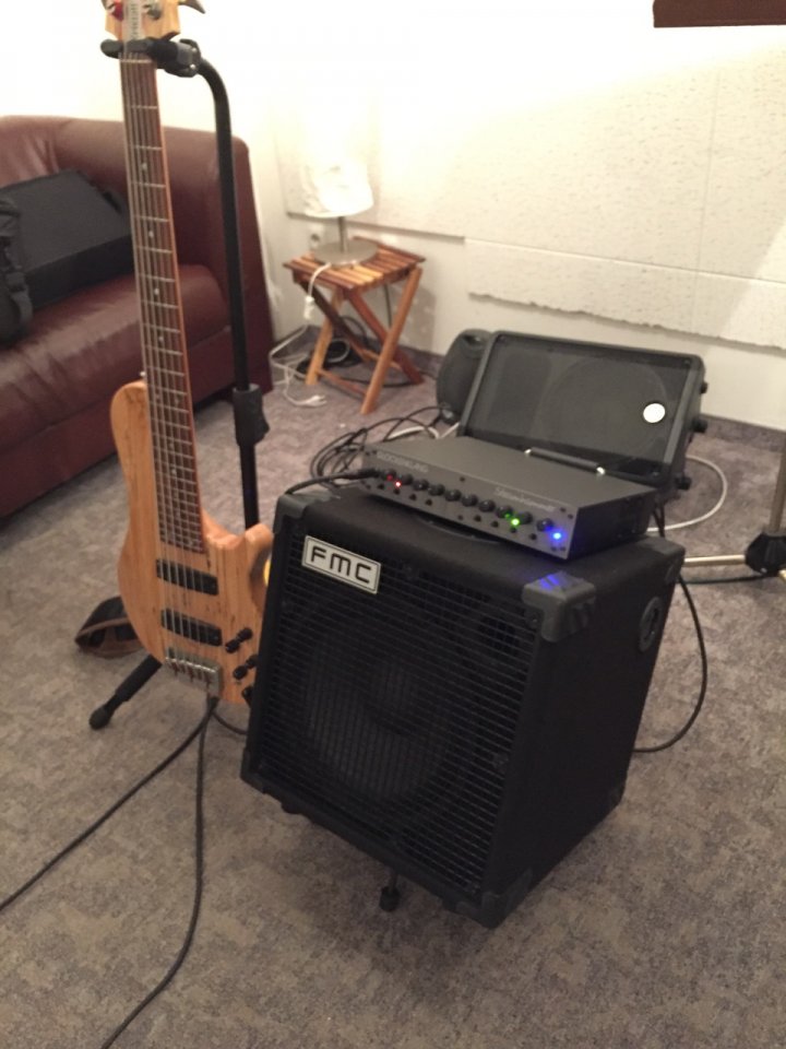 Ich habe noch einen Klappgriff oben/hinten an die Box geschraubt. So ist der Amp gut gesichert. Das Ganze steht sehr stabil und sollte auch auf wackeligen Bühnen sicher stehen.