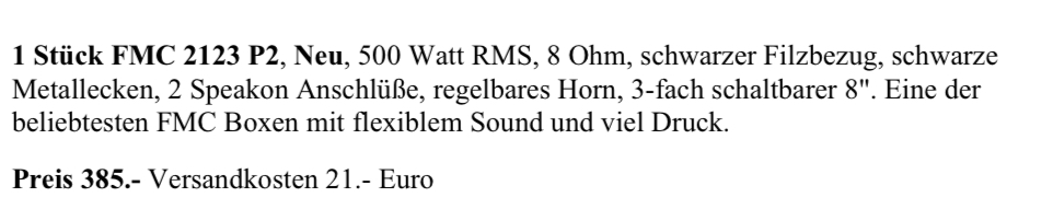 Die Seite wurde ja schon verlinkt. Aufpreise werden dann bei optischen Wünschen wie Tolex, Frontstoff anstatt Gitter, etc fällig.Äh was kostet sowas ohne Hochtöner?