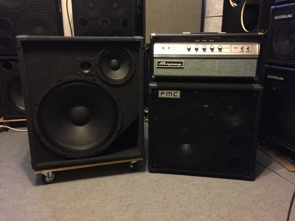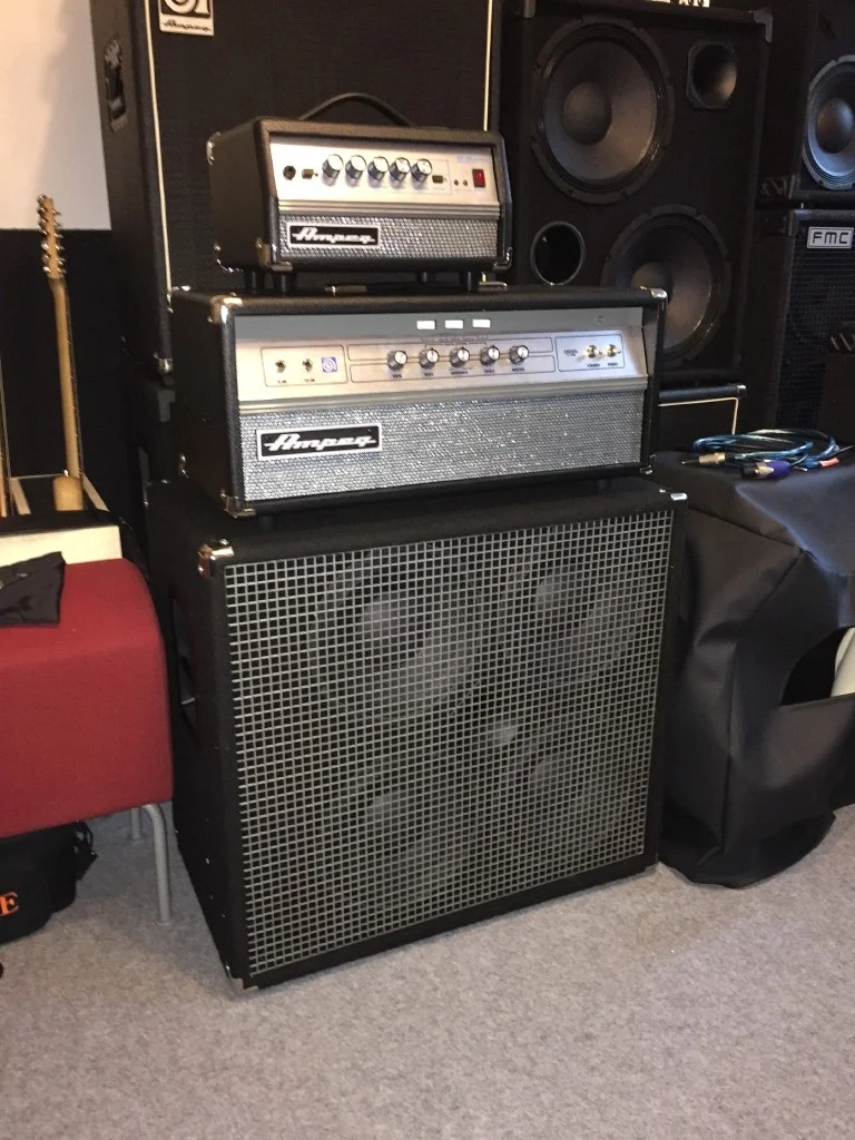 Ferdinando hatte seinen Ampeg V4B (aktuelles Model) dabei und war auf der Suche nach passenden Boxen.