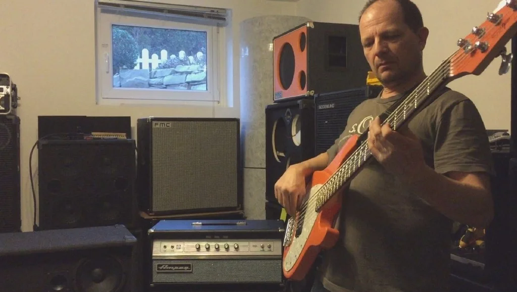 Ich hatte zum Ausprobieren meiner fertigen Box zwei Fünfsaiter und meinen Ampeg Micro VR dabei.