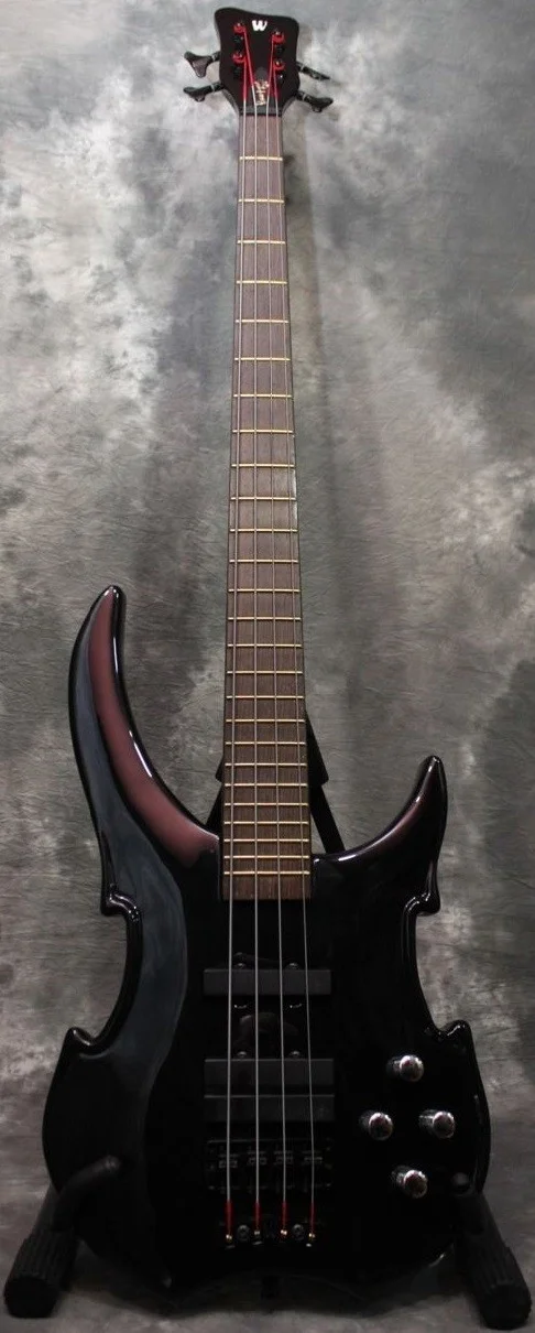 Gebeeldhouwde maple body, ovangkol hals gehaald gelijmd in wenge Toets, Actieve MEC 2-band electronica, MEC twin jazz brug pickup, MEC J hals pickup, zwarte hardware zwarte, hoogglans afwerking. inclusief gigbag!