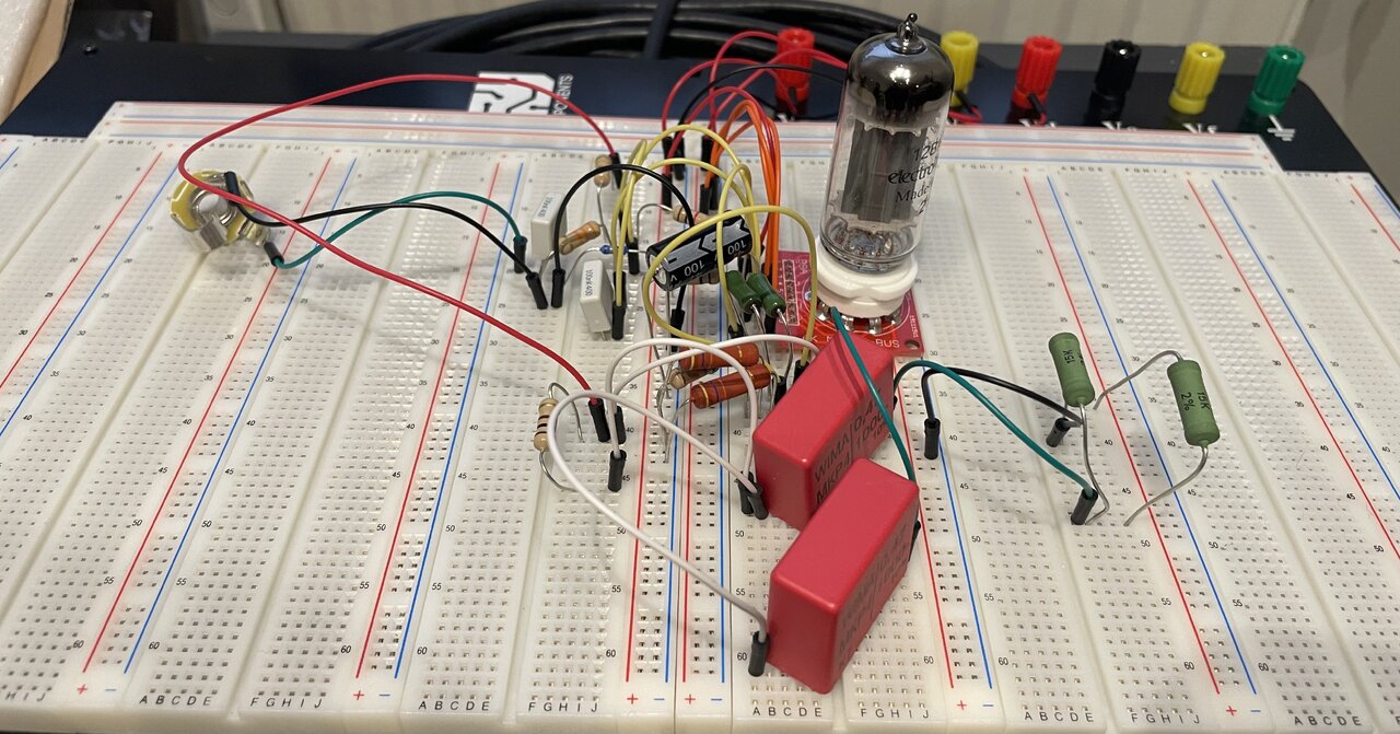 Heute habe ich den CF mal mit einer 12BH7 auf dem Steckbrett aufgebaut.
