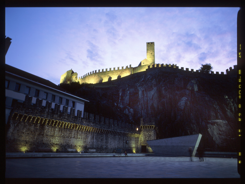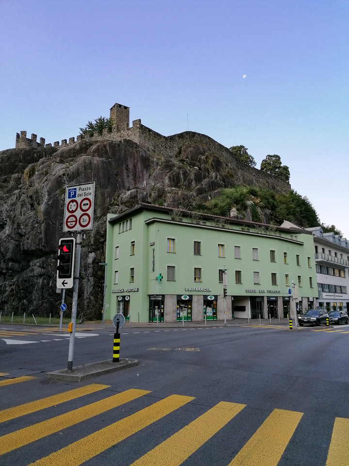 Bellizona in der Schweiz.Es ist Abend geworden, vielleicht kurz nach 11:00 Uhr, und ich sitze noch ein wenig am menschenleeren Platz. Ich mag die Ruhe und die majestätische Erhabenheit der Festung. Kein schlechter Ort zum Leben, denke ich mir - aber ich bin nur auf der Durchreise.